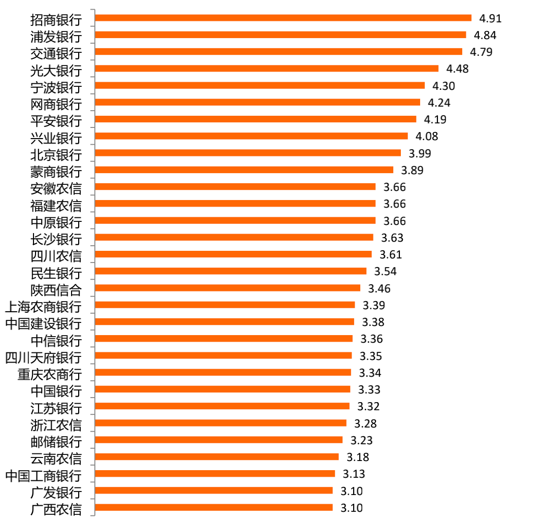 (一)排名综述:浙江农信、江苏银行保持领先,浦发银行入选前十名