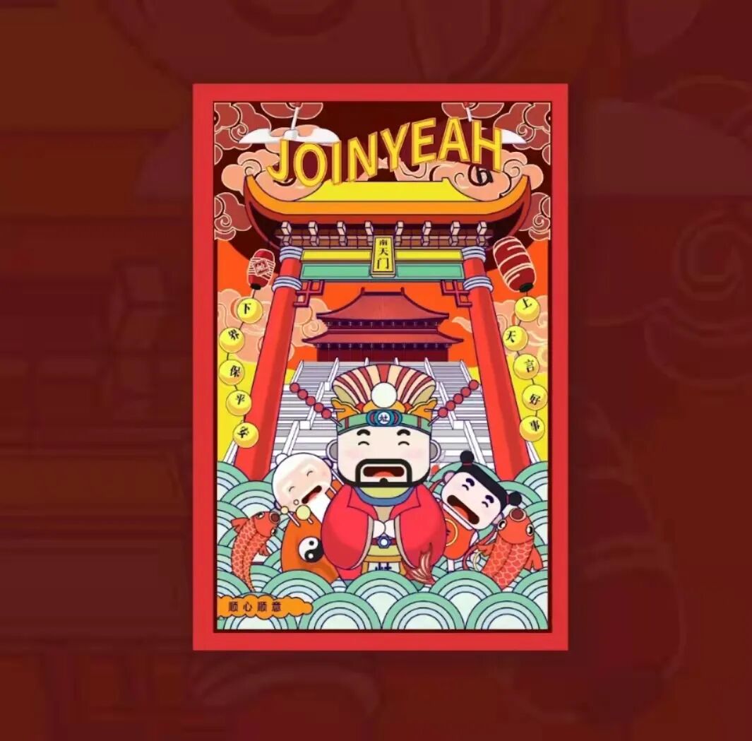 《灶王爷送禧》这幅作品提炼出了锦鲤、灯笼、南天门、祥云等元素,反映出中国悠久的年俗文化、吉祥文化。