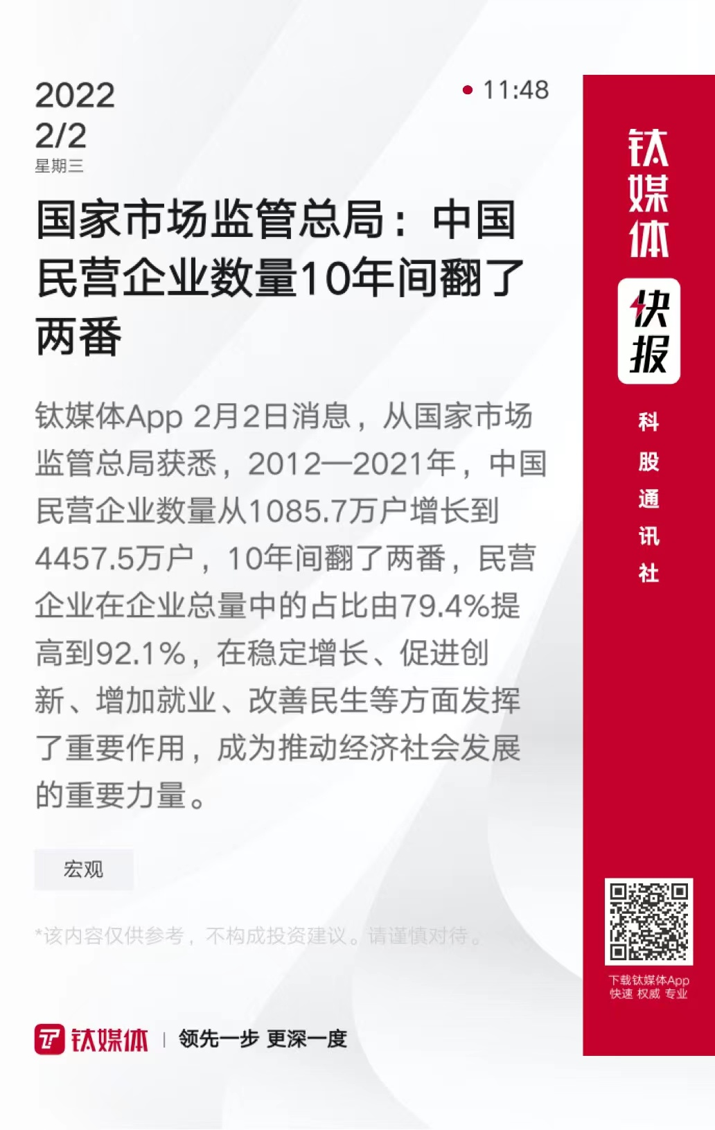 国家市场监管总局:中国民营企业数量10年间翻了两番