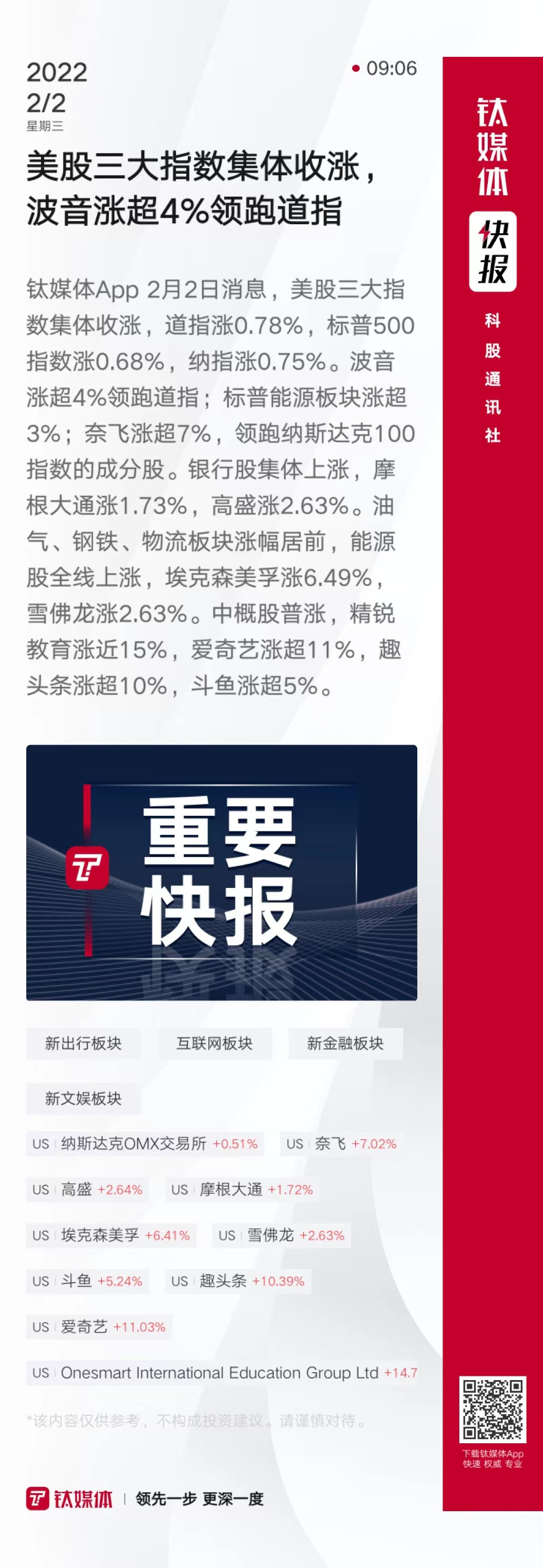 美股三大指数集体收涨,波音涨超4%领跑道指