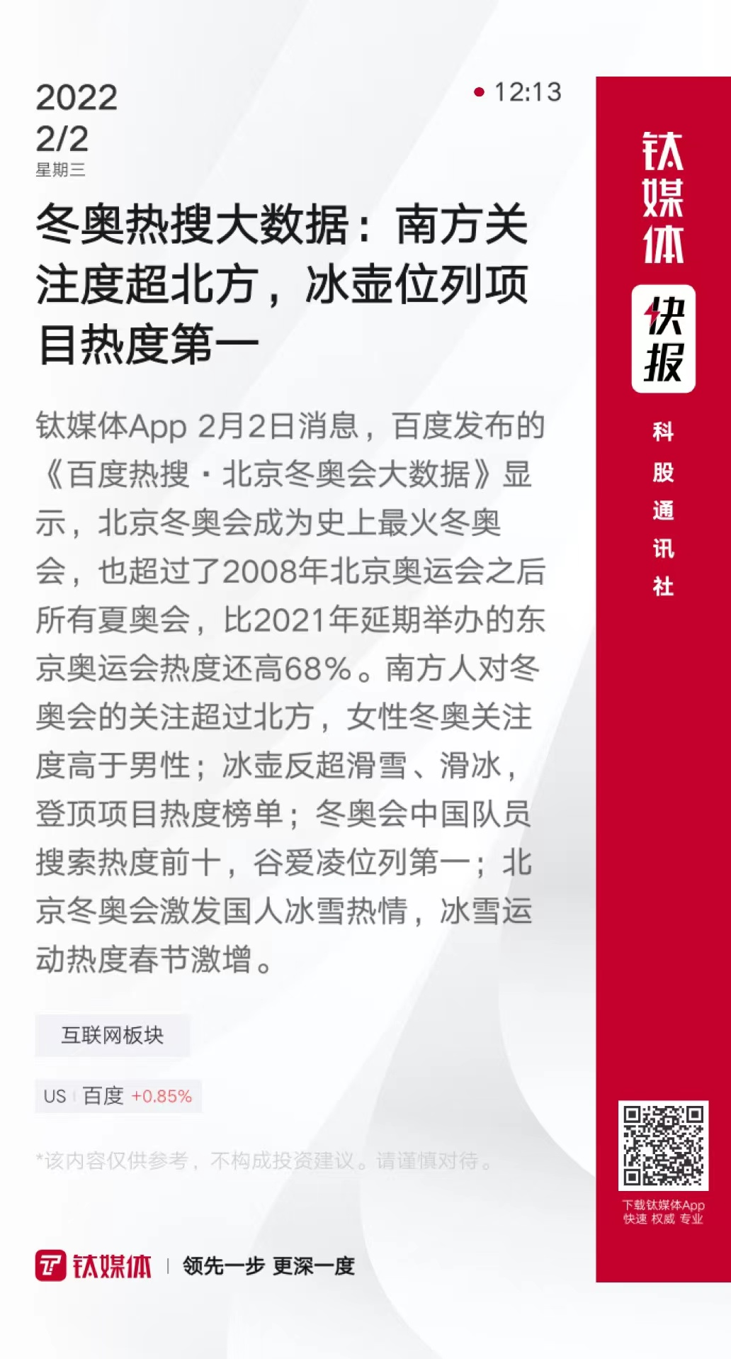 冬奥热搜大数据:南方关注度超北方,冰壶位列项目热度第一