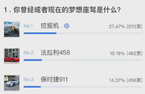 尽管这种投票多少有几分玩笑的味道,但也不无道理。上至明星下至路人,从刚学会走路的小男孩到含饴弄孙的老大爷,一台在施工现场作业的挖掘机,一下下掏空的不是高楼黄沙,而是男人们无处安放的躁动的心。