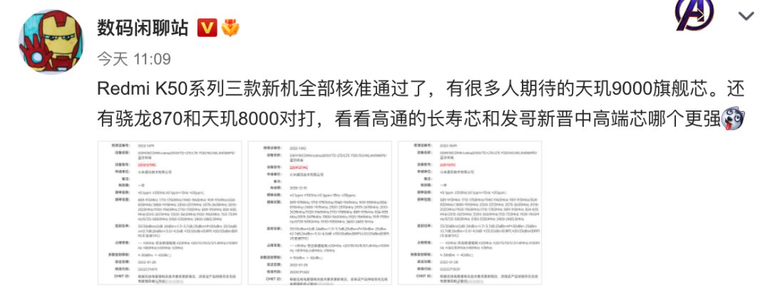 曝Redmi K50核准通过:天玑9000/8000、骁龙870多版本