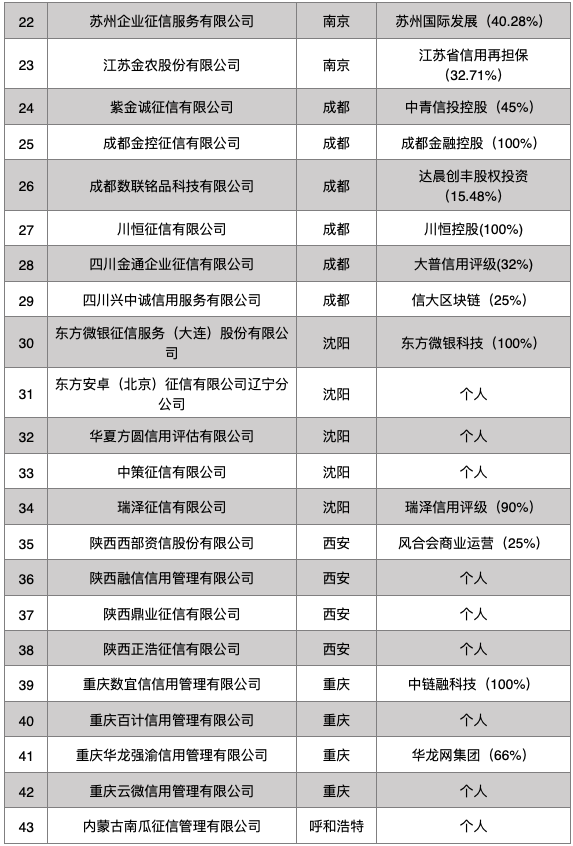 √中国人民银行官网显示,截止2020年12月末,全国共有23个省(市)的131家企业征信机构在人民银行分支行完成备案。其中,北京注册公司最多,有34家,其次是上海26家,广东10家,3个区域合计占比53.4%。