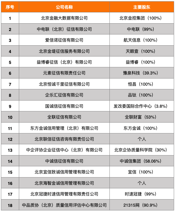 表1:北京市企业征信机构名录(截至2021-01-31)