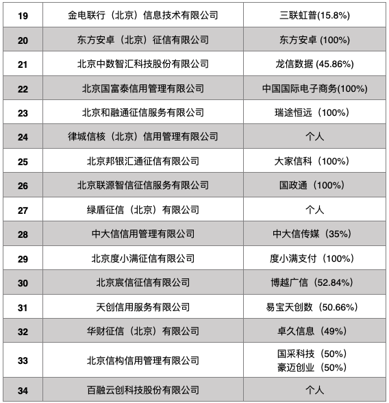 朴道征信于2020年12月28日成立,并于2021年2月2日在北京正式揭牌。这是继百行征信后,目前我国的第二家个人征信机构。朴道征信注册资本为10亿元,北京金控集团持股35%;京东数科持股25%;小米持股17.5%;旷视科技持股17.5%;北京聚信优享企业管理中心(有限合伙)持股5%。