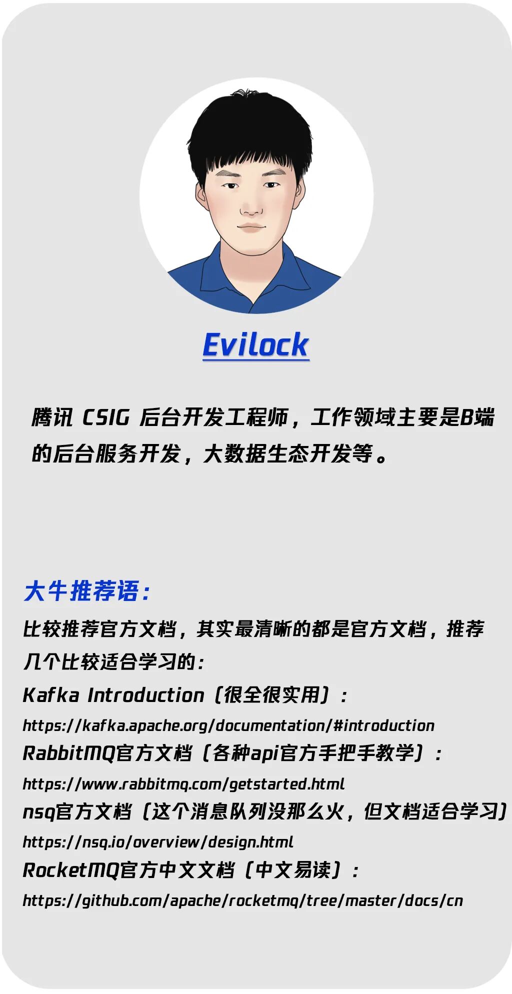 本期《大牛书单》,我们就请来了几位鹅厂同事,为大家推荐一些消息队列相关的书籍,一起多读书多进步。
