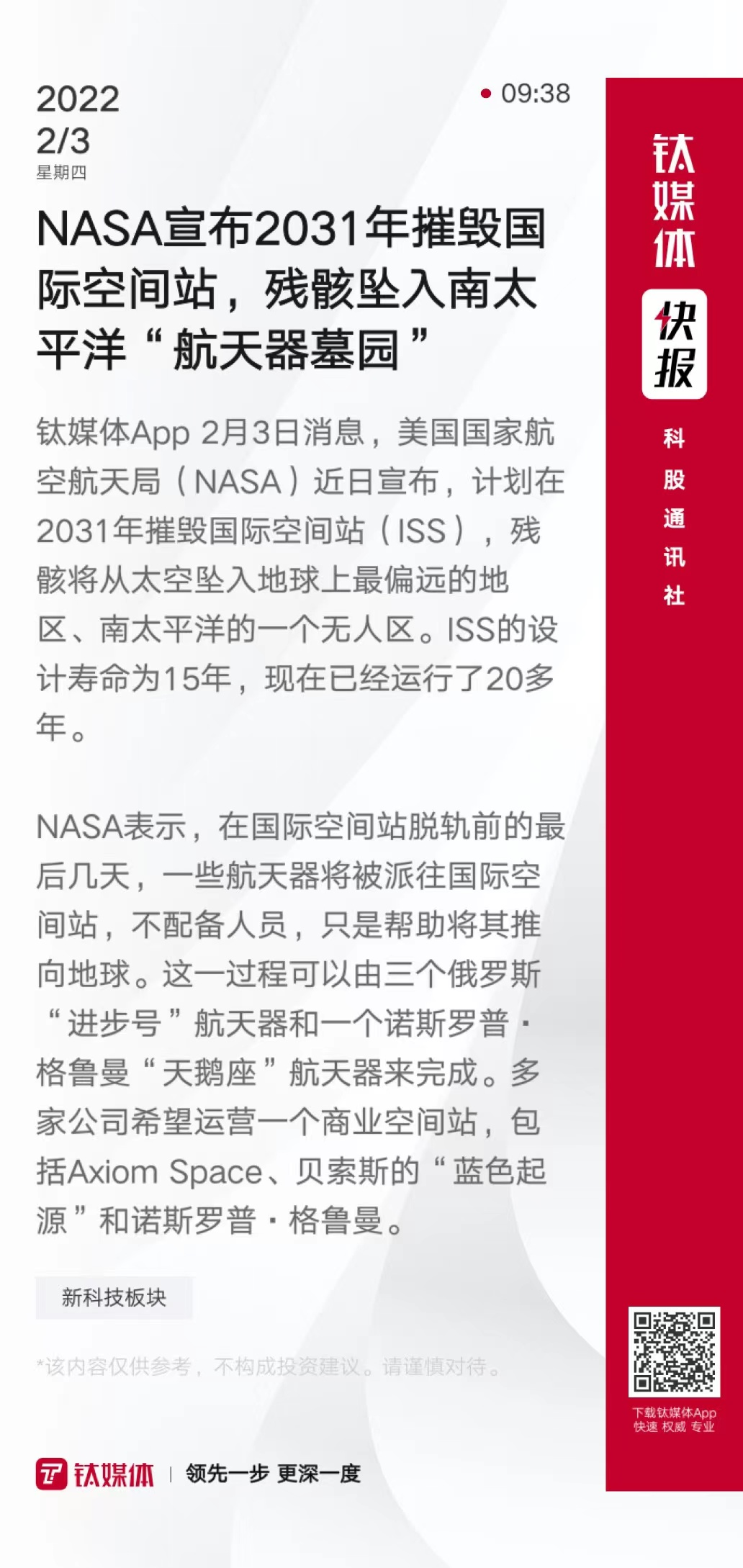 NASA宣布2031年摧毁国际空间站,残骸坠入南太平洋“航天器墓园”