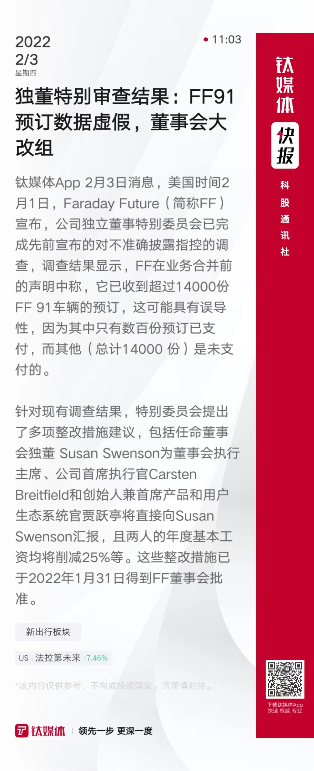 独董特别审查结果:FF91预订数据虚假,董事会大改组