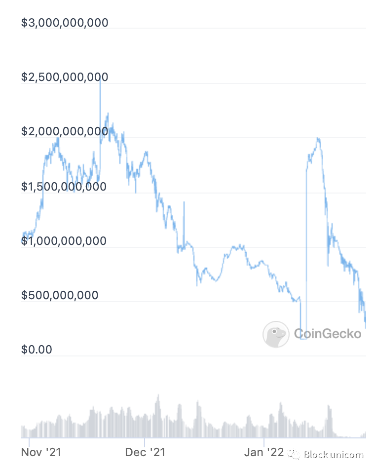 最近,随着越来越多的参与者意识到他们的高 APYs 实际上并不意味着他们拥有更多价值,重新定基代币有了一个清算。以下是 OHM、TIME (Wonderland) 和 BTRFLY ([redacted]) 市值图表: