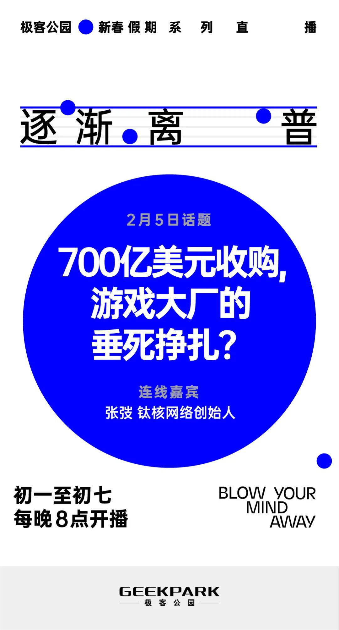 今天(正月初五) 晚 8 点,极客公园「逐渐离普」新春系列第四场直播即将开启,和你一起聊聊主机游戏与游戏大厂那些事。无论你是不是游戏玩家,你未来的生活、工作和休闲,都会与游戏行业的发展息息相关。如果你也对这个话题感兴趣,欢迎点击下方按钮预约直播哦!