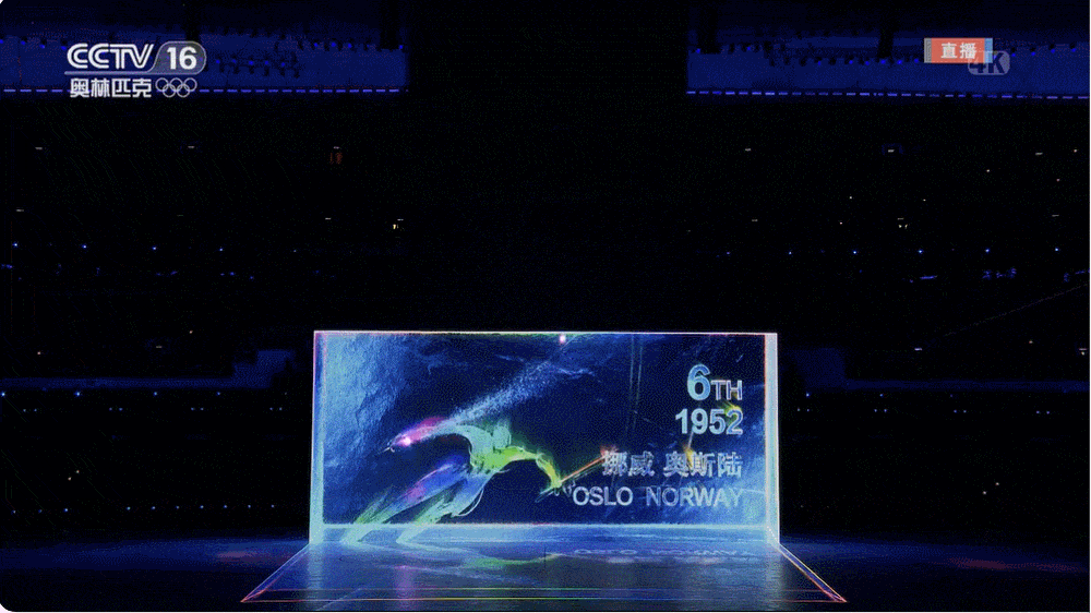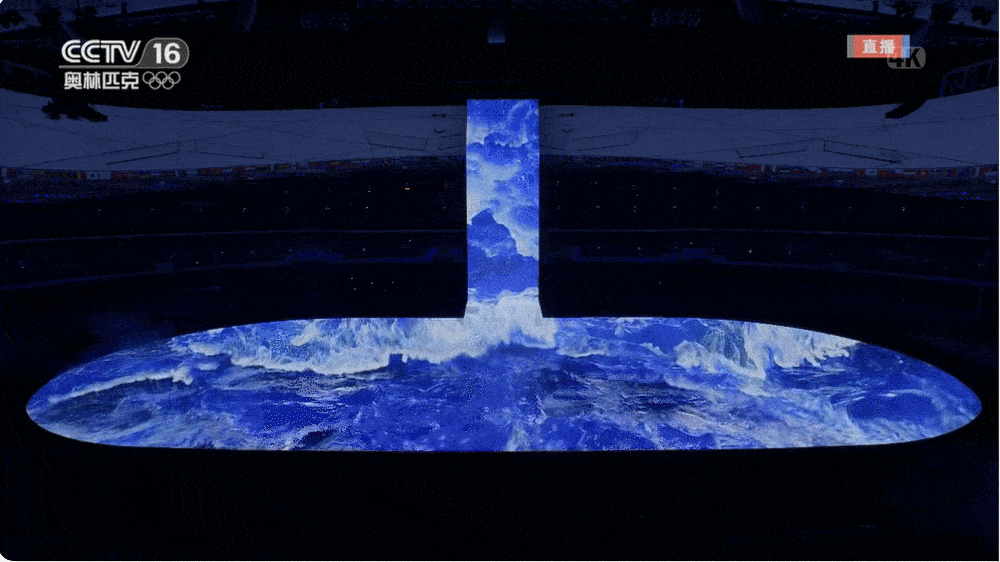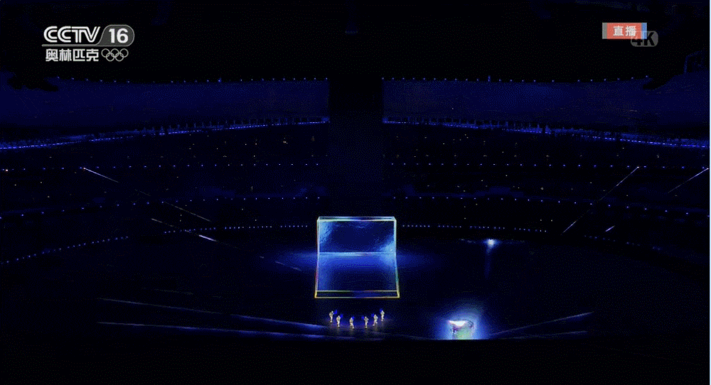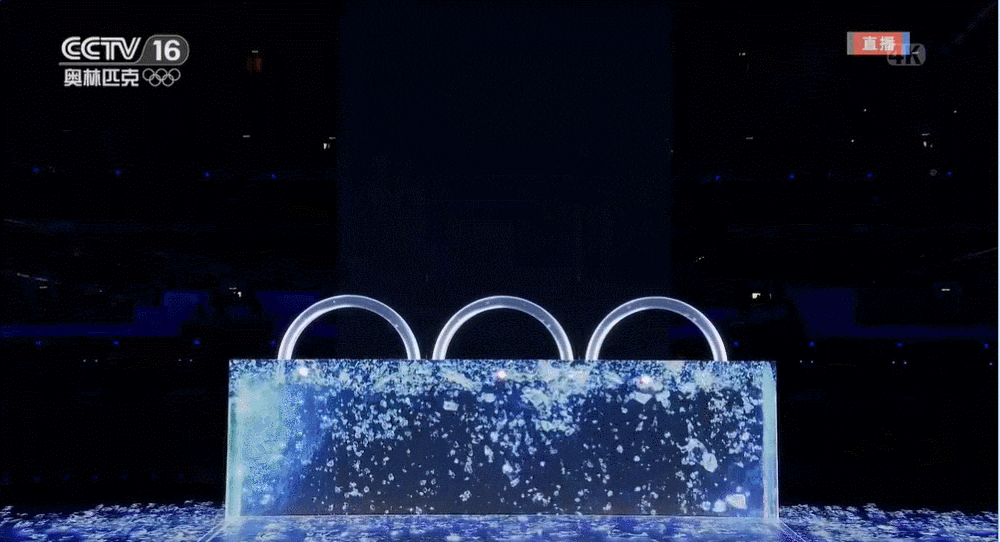 这块竖屏是一块近60米高、20米宽的LED屏,名为“冰瀑”。要在平地竖起这样一块大屏,一大考验是大风,秋冬季节的场内风速足以将屏幕撕烂,为此技术团队记录了一两百种风况来攻坚这一技术难题。此次开幕式的舞台地面是目前最大的8K超高清地面显示系统,整体面积达10393平方米,京东方采用多个8K+级分辨率的画面融合技术,超大规模的光学校正算法可对每个显示画面进行像素点级的光学校正,可呈现出100000:1超高对比度,3840Hz超高刷新率,以及29900x15096超高分辨率的超高清绚丽画面。蓬勃的黄河之水慢慢冰冻,然后出现了一个巨大的近3层楼高的立方体冰块(冰立方),历届冬奥会的标志随着激光刻刀逐一被雕刻出来。![]()