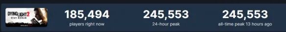 而从Steam平台的在线玩家数量统计上看,发售首日的在线玩家数量峰值达到了245553人,这个数据远远超过了其初代《消逝的光芒》的历史在线玩家人数峰值,45876人。