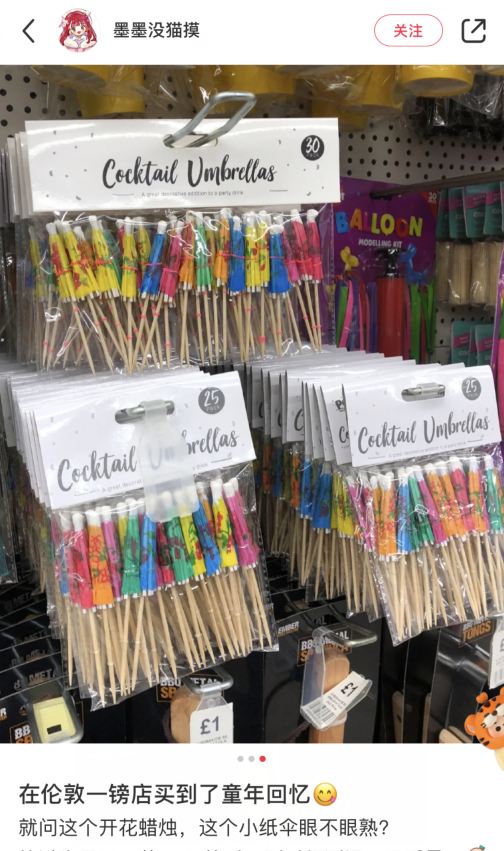 一些海外网友还发现,在他们各自国家的商店里,你不仅能找到物美价廉的莲花蜡烛,还能买到曾经我们眼中必不可少的蛋糕装饰品——小纸伞。