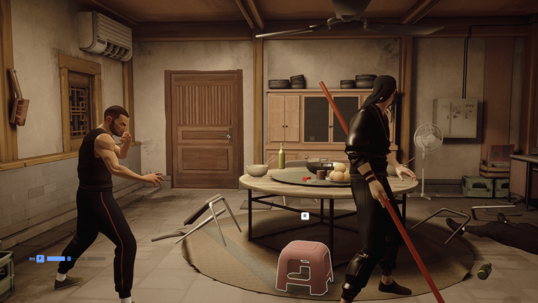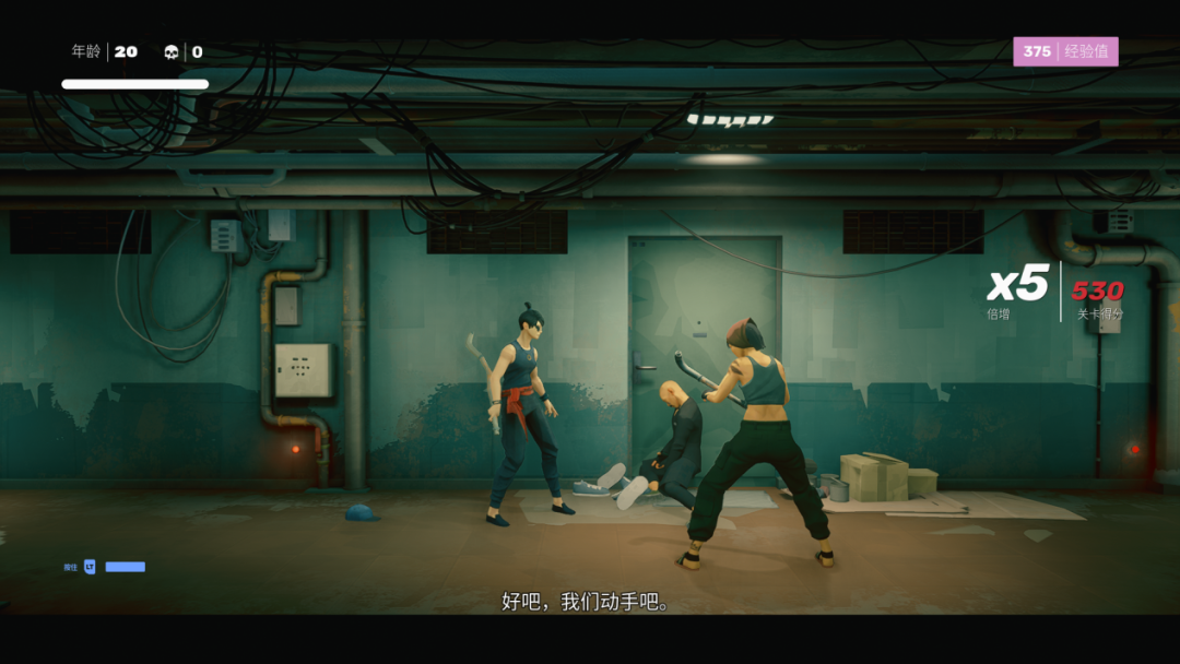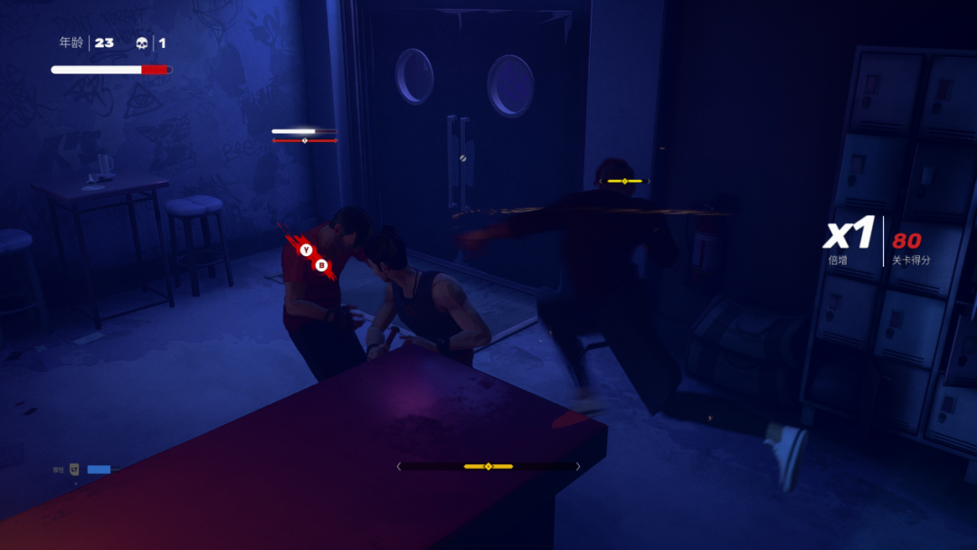 击败了足够多的敌人后,玩家可以消耗经验值学习新技能,与初始技能不同的是,关卡中习得的技能,能帮助玩家应对更加复杂的战局。比如,可以将敌人直接击倒在地的滑铲和扫堂腿,使用后可以追加攻击倒地的敌人,快速积攒敌方“体系”;又或者学习“环境专精”技能后,主角将可以和环境发生更多交互,能够将地上的凳子和武器踢向敌人,击中后积攒对方的“体系”;也能够借助环境触发特定的攻击动作,比如将敌人直接扔出窗外,或者将敌人的脑袋拍在桌面上,让游戏变成“成龙模拟器”。