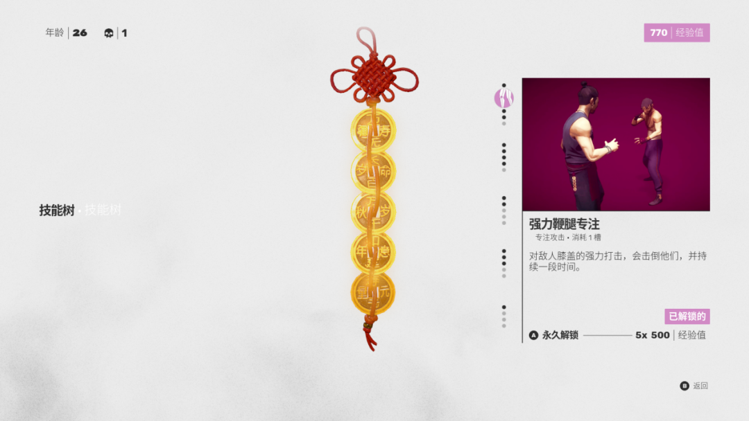 这也正是《师父》最容易劝退普通玩家的地方。你需要不断挑战同样的关卡,打败同样的敌人,降低过关时的角色年龄,才能继续推进游戏流程——除非你天赋异禀,是个动作游戏高手,可以正好在主角80岁的生命周期内,通关全部五个关卡,否则你大抵都是要重复游玩部分关卡的。