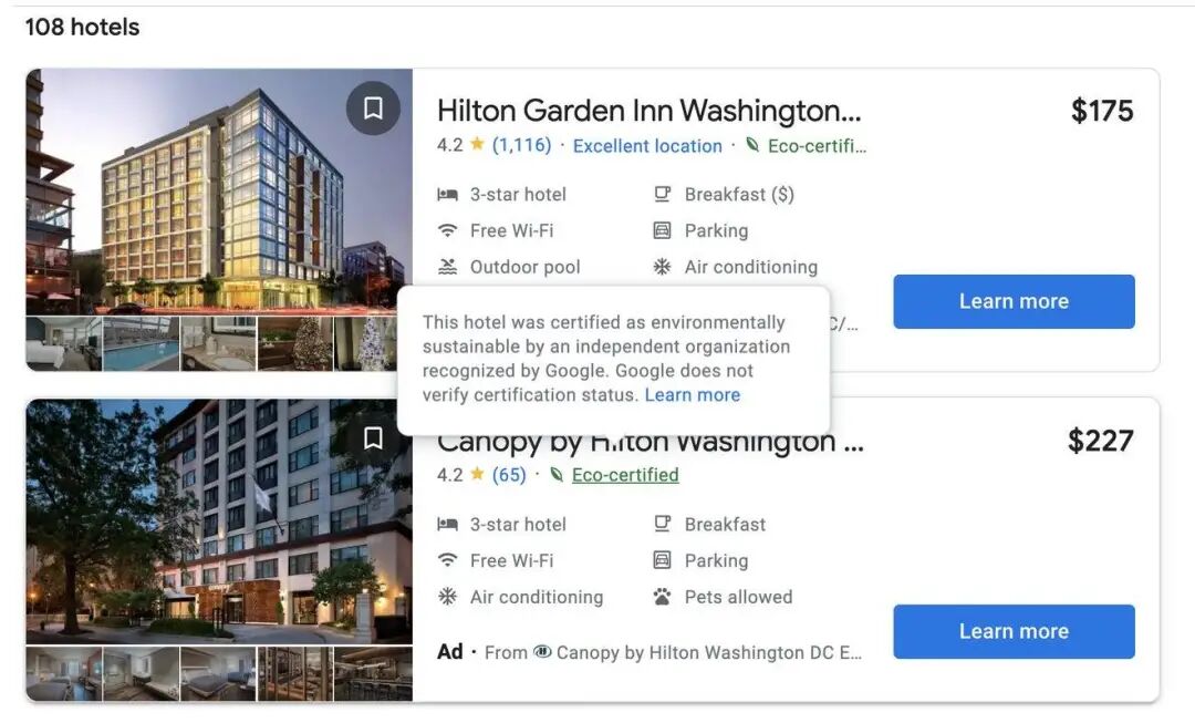 从全民吐槽纸吸管、买手机不配耳机和充电头、日益流行的素食之风……都可以看出,环保有时候会跟生活的方便对立,跟我们自身利益对立,甚至容易引起极端的追随,但我们依然在提倡环保,因为它与未来息息相关。为了让环保变得更轻松一些,很多科技公司都在行动,Google 最近就搞了一个大动作。他们想让你的搜索、购物、出行、导航,甚至家庭用电,都有一个新的「环保版」。非营利组织 Avaaz 最近一项分析就显示,在 YouTube 上搜索「全球变暖」,弹出的前 100 个视频里,20% 都充斥着各种错误信息。所以 Google 在自己的搜索平台进行了一番调整,当你搜索「气候变化」(climate change)等关键词时,你将会被引导进入一个专门的结果页面。这个页面里,会有「高质量的气候相关信息」,这些内容都来自于和气候研究相关的权威机构。除此之外,就是现有关于气候变化的新闻等等,过去一些不实气候变化信息的广告将不再显示。更权威和准确的信息,有助于消解人们对气候危机的怀疑,也能在环保教育献上一些力。这项功能推出的具体时间还未定,但本月内将可以体验到。虽然很多人不会在购物时专门买更环保的版本,但如果环保能更省钱,那就不一样了。对于电器来说,人们可能不会为更环保的电器下单,但会为更节能的电器下单,原因很简单,因为可以省电费。现在当你用 Google 搜索在网上购物时,搜索洗碗机、烘干机、热水器、炉灶等等,都会显示更节能的货品。Google 自家此前推出过 Nest 恒温器,现在用户将软件升级到最新版本 Nest Renew,可以选择 Energy Shift 的新功能。这项功能在人们在使用 Nest 恒温器时,能自动调整使用能源的渠道,从一般供电系统切换到可再生能源如风能、太阳能等来源。另外,还有一个付费订阅选项 Renew Premium,每月花 10 美元,可以让你家中使用的电力获得可再生能源积分,如果你在可再生能源相关行业有一些投资,它也能带来一些帮助。当你开车使用 Google 地图时,会新增一条「最省油路线」,这是系统根据时间距离、道路坡度、交通路况的判断分析得出,减少燃油也能减少更多尾气污染。如果最省油的路线也是最快的路线,这条路线就会成为默认的最佳路线。如果最省油的路线并非最快,那么选择权就会交给用户。早在 3 月份,Google 就已经宣布即将推出这个功能,现在美国已经可以使用,2022 年起,该功能将扩展到欧洲和其他市场。Google 预计这可以每年减少超过 100 万吨的碳排放——相当于从道路上减少 20 万辆汽车的样子。当然对用户更重要的是,可以通过减少燃料消耗来省钱。现在购买电动汽车的人也越来越多了,明年年初开始,美国用户在搜索汽车型号和制造商时,Google 结果将显示更多混合动力汽车和电动汽车。如果你搜索特定的电动汽车,还能看到附近与汽车型号兼容的充电站,让你知道买哪个牌子对你出行更方便。对于环保来说,当然不开车最好,所以 Google 也为骑行者提供了精简版的导航。新的导航显示的骑行路线更简洁明了,不用常亮手机屏幕,随时会汇报路线进度、预计时间和路线海拔等,还可以在全球 300 多个城市看到哪里有共享单车可以骑。另外一个有意思的新动作,是 Google 尝试让 AI 来改善城市交通。他们之前就在以色列试点关于 AI 如何通过红绿灯改善道路堵塞的研究,主要是通过提前预测交通情况,然后让红绿灯不再限定于固定时间,而是根据交通情况灵活变动。当然在更多大城市,或许这个招数并不完全适用,交通堵塞的原因很多,该堵的还是会堵,但 AI 必然会在未来的交通中带来更具能动性的益处。在 Google 的试点结果中,以色列的汽车堵塞延迟的时间减少了 10%-20%,或许它接下来也可以继续扩展到其他适合的城市。2020 年 1 月 14 日,工人在以色列北部城市 Tzfat 操作交通灯。图片来自:David Cohen/Flash90如果你用 Google 搜索航班(Google Flights),现在就可以看到每个航班预计产生的碳排放量,标识绿色徽章,就表示这是最低碳排放的航班。Google 将欧洲环境署的数据与航空公司和其他供应商提供的有关飞机类型、飞机座位数和行程距离的个别航班的具体信息相结合,最后得出结论。其实就算同一路线的航班,可能也会因为飞机年龄不同,而产生不同的碳排放量。越新的飞机,污染越小。而且,你还可以看到每个座位都会产生多少个人的碳足迹。比如说,头等舱和商务舱就会增大个人的碳排放量,因为这些座位也会占据更大的机内空间。所以,人们将不仅能根据价格和飞行时间来选择航班,还能根据航班的污染程度来选择。Google 也在尝试开发一个计算航空旅行碳排放量的开放模型,让整个旅游行业也能使用这个框架,逐渐走向标准化。当你下飞机后,用 Google 搜索酒店,还能看到不同酒店的「可持续性」信息,包括酒店如何减少浪费、节水措施、是否获得过 Green Key 或 EarthCheck 的环保认证等等。除了上述的环保新动向,甚至连你买股票,都可以更「环保」了。Google Finance 以 Climate Disclosure Project 的数据为基础,给各个公司都引入了一个「可持续性分数」,所以,现在你手上的股票,也能看「环保系数」了。全球的大型互联网科技企业,几乎都在环保上行动,试图起带头作用。从 Google、苹果、微软、亚马逊,到国内的腾讯、阿里、百度,都在尝试从公司自身到社会公益,多方位实现碳中和及零碳排放的目标。我们可以切身感受到的,就有苹果取消送耳