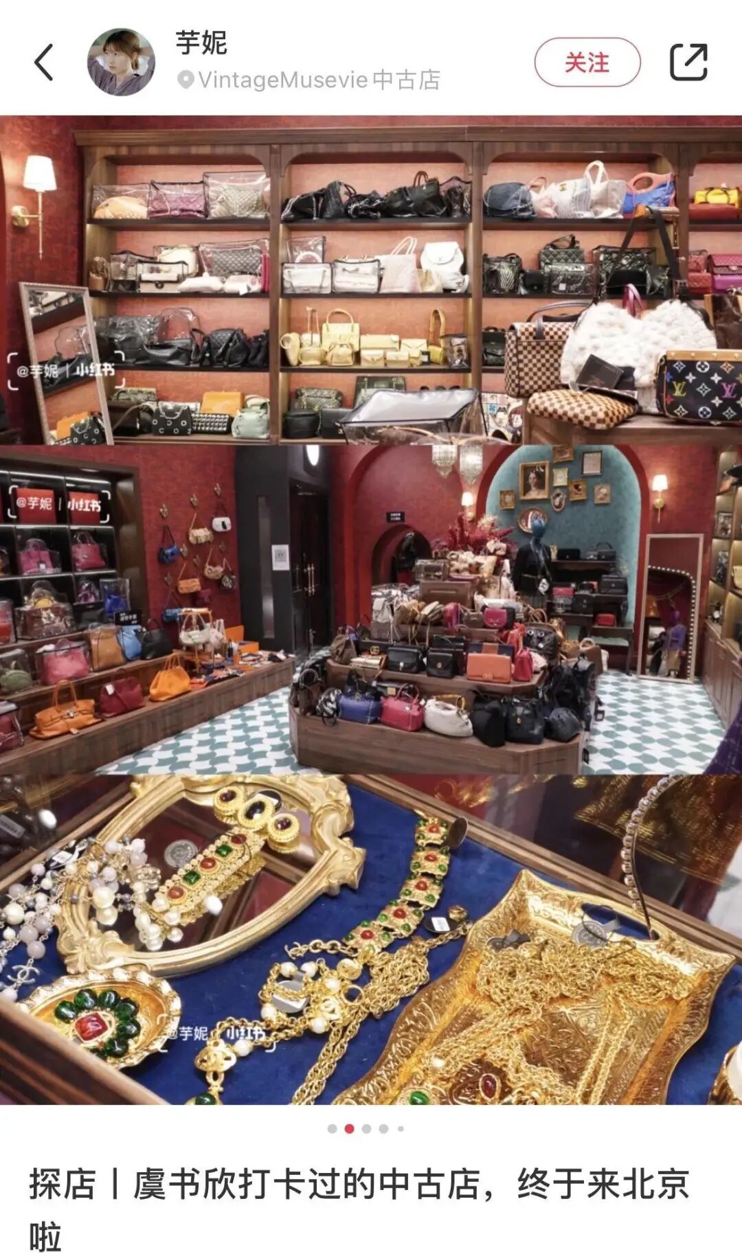 北京三里屯商圈近年来多了不少二奢门店。其中一些店铺虽然成立还不久,却已经火速蹿红。曾在上海爆火的 Vintage Musevie,也是前述的《三十而已》顾佳寄卖手镯情节的取景地。它在进驻三里屯后,已迅速跃升为这里的「网红打卡店」之一。