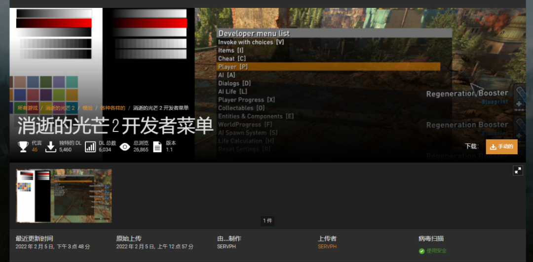 《消逝的光芒2》发售后数个小时,这些玩家陆续发现,通过修改游戏文件中的某个选项,可以在游戏里打开隐藏的开发者专用菜单。2月5日,一位网名叫SERVPH的玩家把修改过的文件上传到NexusMods网站,其他玩家只需下载文件并放至根目录,即可在游戏中调出开发者菜单。
