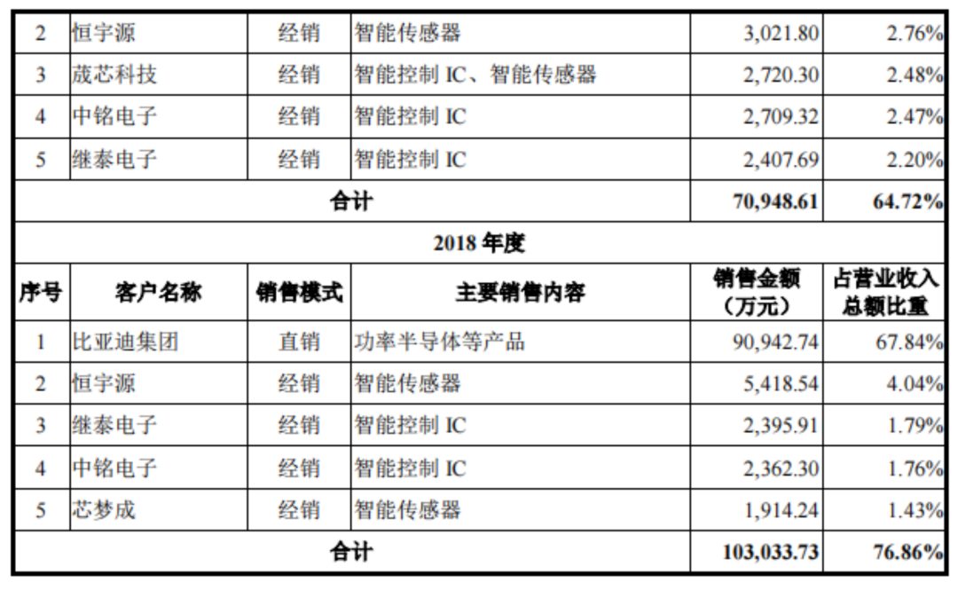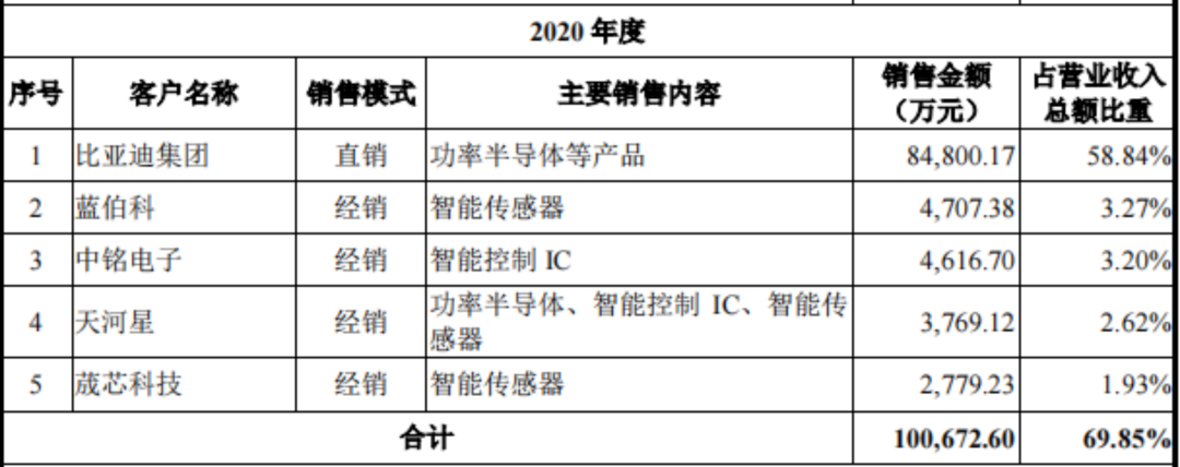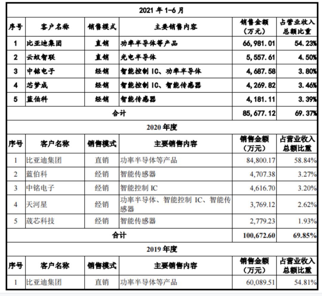 2022年1月27日,创业板上市委发布审议结果,比亚迪半导体股份有限公司IPO成功过会,成为今年首个在创业板顺利过会的半导体企业,顺利的话也将是A股第一家车载芯片上市公司。自2020年比亚迪(002594.SZ)公布拆分比亚迪半导体并实施上市计划起,比亚迪半导体的估值问题就一直是投资者所讨论的焦点。2020年5月22日-6月22日,在短短一个月的时间里,比亚迪半导体先后完成了19亿元的A轮融资以及8亿元的A+轮融资,估值达到102亿元。比亚迪半导体开启IPO进程后,中金公司给与不低于300亿元估值。比亚迪半导体的招股书显示,本次发行股数不超过5000万股,占发行后总股本的比例不低于10%,拟募资26.86亿元。如果按照顶格申购标准,比亚迪半导体的估值将到达270亿元。一、全球“缺芯”,新能源汽车爆发背景下,比亚迪半导体正处于风口之巅2021年,整个汽车行业饱受“缺芯”的折磨, 对此小鹏汽车创始人何小鹏曾发文感慨:“抽芯断供供更苦,举杯消愁愁更愁”,国内外众多车企因芯片短缺,纷纷宣布减产或停产,然而随着新能源汽车的快速发展,汽车智能化越来越普及,对于车规芯片数量的需求进一步加强。依据中国汽车工业协会统计,2021年中国新能源汽车市场实现强劲增长,新能源汽车销量为333.4万辆,新能源汽车销量比2020年增长1.7倍。中汽协预计,2022年中国新能源汽车会同比增长47%,达到500万辆。如果按订单销售数量来看,或许新能源汽车的销售增长更为惊人,受限于产能,以特斯拉为例,提车周期已经排到4个月左右,其中芯片供应问题是导致提车周期较长的一大原因。比亚迪半导体此时上市,无疑是刚好赶上目前最热的风口。招股书显示,比亚迪半导体受到众多一线资本青睐,在IPO之前,比亚迪股份持股72.3%,为控股股东,此外,包括红杉中国、先进制造基金、小米产业基金等都位列比亚迪半导体前十大的股东。根据比亚迪半导体招股书,自2018年至2020年以及2021年1-6月,4个报告期内营业收入分别达到了13.4亿元、10.96亿元、14.41亿元、12.35亿元,净利润达1.03亿元、0.85亿元、0.58亿元、1.84亿元。比亚迪半导体2021年上半年的营收已接近2020年全年总额。比亚迪半导体2018-2021年1-6月业务结构及营收情况(单位:万元)三、功率半导体(IGBT)方面拥有IDM模式的运营能力,为其构筑高壁垒IGBT在新能源汽车的电机驱动控制器中发挥核心作用,直接控制直、交流电的转换,同时对交流电机进行变频控制,通过决定驱动系统的扭矩和最大输出功率来直接影响新能源汽车的加速能力和最高时速。在IGBT领域,根据 Omdia统计,以2019年IGBT模块销售额计算,比亚迪半导体在中国新能源乘用车电机驱动控制器用 IGBT模块全球厂商中排名第二,仅次于英飞凌,市场占有率 19%,在国内厂商中排名第一,2020 年公司在该领域保持全球厂商排名第二,国内厂商排名第一的领先地位。经过多年的技术积累及发展整合,比亚迪功率半导体业务主要采取IDM经营模式,已形成包含芯片设计、晶圆制造、模块封装与测试、系统级应用测试的完整产业链,拥有突出的科技创新能力,在车规级功率半导体领域实现突破及自主可控。IDM(Integrated Device Manufacture)模式,其主要特点为集芯片设计、芯片制造、芯片封装和测试等多个产业链环节于一身,相较于Foundry(代工厂)模式与Fabless(无工厂芯片供应商)模式,IDM模式在设计、制造等环节协同优化,有助于充分发掘技术潜力,能有条件率先实验并推行新的半导体技术。这一模式更有利于企业建立品牌优势,放眼全球芯片行业,目前仅有少数企业有能力进行IDM模式制造芯片。另外值得注意的是,根据 Omdia最新统计,以 2019 年IPM 模块(Intelligent Power Module,是指智能功率模块,一种先进的功率开关器件)销售额计算,公司在国内厂商中排名第三,2020 年比亚迪半导体IPM 模块销售额保持国内前三的领先地位。在SiC器件领域,已实现SiC模块在新能源汽车高端车型电机驱动控制器中的规模化应用,也是全球首家、国内唯一实现SiC三相全桥模块在电机驱动控制器中大批量装车的功率半导体供应商。比亚迪半导体围绕核心产品自主研发并掌握了一系列核心技术,截至本招股说明书签署日,公司拥有已授权专利1188项,其中发明专利737项。除了以上积极的方面,同样也有不少投资者对比亚迪半导体表示担忧,其中最大的诟病就是,比亚迪半导体对关联方销售占营业收入的比例较高,其中占比最高的是母公司比亚迪集团。目前来看,公司的发展严重受制于母公司。2018 年、2019 年、2020 年和2021 年1-6 月,比亚迪半导体向关联方销售商品、提供劳务及合同能源管理服务的金额分别为 90,997.60 万元、60,144.63 万元、85,057.79 万元和 66,996.66 万元,占营业收入的比例分别为 67.88%、54.86%、59.02%和 54.24%。比亚迪半导体的产品主要销售对象为比亚迪集团,占比均超过50%。招股书显示,在其前五大客户中,除了母公司比亚迪集团,其余四家客户中均未出现其他车企身影。比亚迪半导体虽然在新能源汽车领域已进入小康汽车、小鹏汽车、宇通汽车和福田汽车等品牌厂商的供应体系,在工业电焊机和变频器领域已进入瑞凌股份、北京时代、英威腾、蓝海华腾、汇川技术等厂商的供应体系。但据其回复深交所问询的文件显示,这些车企向比亚迪半导体采购的芯片量级非常小,小鹏汽车只买了不到60万元的传感器芯片,宇通汽车也只购买了240多万的IGBT模块。实际上,对