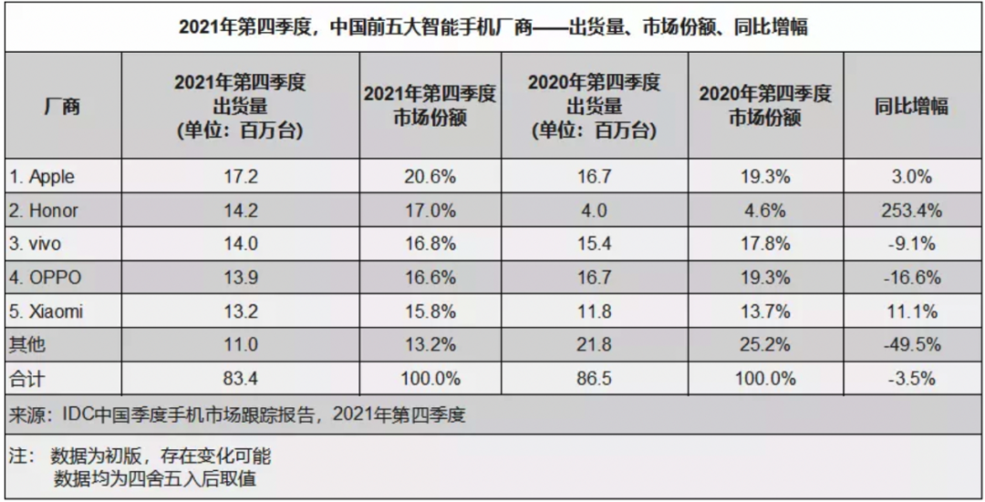 2020年11月,多家企业在《深圳特区报》发布了联合声明。声明中提到,深圳市智信新信息技术有限公司作为收购方,完成对荣耀品牌相关业务资产的全面收购。而对于荣耀的发展方向,荣耀终端有限公司CEO赵明在相关的采访中表示,“对于任总也好,对于华为也好,最好的尊重方式,其实就是荣耀自己要发展的更好。”对于旗下的产品规划,赵明则表示,“我们会打造我们的高端旗舰系列Magic,我们把Magic作为行业内最顶级的旗舰产品来定位和打造。”“超越原有的体系,达到和超越Mate和P的水平和能力。”而在过去的一年中,新荣耀摆脱了生产供货等方面的限制,更自由地进行产品研发,在以往取得的成绩基础上,开始了对更高定位市场的冲击。2021年6月,荣耀正式发布了荣耀50系列新品,搭载75度超曲屏,机身采用了独特的双镜设计,全球首发高通骁龙778G芯片,首发起售价2699元。对于2021年的荣耀来说,荣耀50系列的发布有着不同于其他新品的意义。荣耀官方公布的信息显示,2021年是荣耀迈向新征程的第一年。1月全面恢复供应制造,6月发布荣耀50系列。截止10月份,荣耀50系列已在全球40+国家开售。而根据荣耀展示的数据,荣耀的市场份额占比曾一度降到最低点3%,但随着2021年6月的荣耀50系列发布,其开售即创下1分钟销售额破5亿纪录,荣耀的市场份额占比也回升至9.5%。而在这之后,荣耀也开启了持续的大幅度市场份额提升。Counterpoint Research的分析报告也提到,“荣耀 50系列在中端市场取得了迅速的成功。”随着荣耀旗下产品的大量上市,荣耀的销量表现也逐渐攀升。Canalys发布的2021年第一季度国内智能手机市场出货量排名中,荣耀没能进入前五榜单,但其仅次于苹果,排名第六。IDC公布的2021年Q2国内智能手机市场出货排名中,荣耀跻身前五,出货690万台,占据8.9%市场份额,这也是荣耀独立后,排名首次进入国内市场前五。2021年“618”期间,荣耀Play5T 活力版获京东疯狂2小时安卓手机单品销量冠军;荣耀智慧屏系列1小时全平台销量破万;荣耀笔记本系列1小时全平台销量破万;荣耀智能穿戴系列1小时05分全平台销量破万。2021年7月的Counterpoint国内智能手机市场调研报告中,荣耀排名第四,市场占有率为13%。Counterpoint 2021 年 8 月国内智能手机市场报告则显示,荣耀超越小米,成为国内市场第三大智能手机品牌。荣耀在国内市场的销售额同比增长18%,成为增长最快的品牌之一。在2021年的整个第三季度,荣耀上升至第三位,市场份额占比达到15%。Counterpoint的分析报告中提到,“荣耀是2021年三季度增长最快的品牌,销量环比增长高达96%,跑赢了大盘增长。”时间来到2021年第四季度,荣耀在国内市场出货量达到1420万台,市场份额占比17%,位列榜单第二位。虽然荣耀整体排名在第二位,但其在国产品牌中已占据首位。而就2021年全年来看,荣耀也跻身了国内市场出货前五。在国内市场取得良好销量反馈的同时,荣耀对海外市场发展的推进也并未停止。荣耀HONOR官方账号曾发布消息确认,HONOR荣耀已经在早期阶段成功确认了与多家供应商合作伙伴的合作。荣耀50系列将搭载Google Mobile Services(GMS),为客户提供更全面的应用环境和非凡的移动体验。![]()