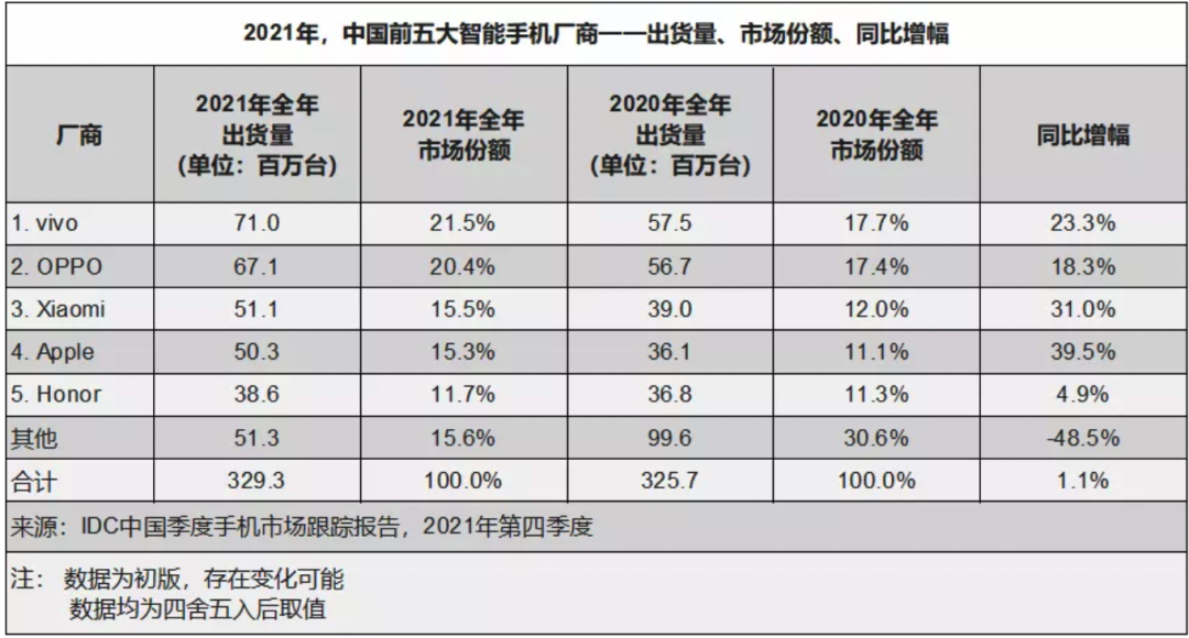 在这一年中,一加正式回归OPPO,旗下新品也按照计划陆续上市,还带来了首款自研芯片、首款折叠屏等探索新品。2021年3月,Find十年理想之作OPPO Find X3系列如约而至。拥有2000+控制点精密调整后盖曲线,艺术级热锻工艺使玻璃热弯、一体成型;搭载骁龙 888(标准版搭载骁龙870),内置4500mAh电池,支持65W超级闪充,起售价4499元。随后,OPPO又推出了OPPO Find X3 Pro火星探索版。2021年5月,OPPO举办了OPPO K9系列超次元发布会。手机新品OPPO K9、OPPO 智能电视 K9于活动中亮相。同月,全新人像视频手机OPPO Reno6系列也正式发布。提供OPPO Reno6 Pro+、OPPO Reno6 Pro以及OPPO Reno6三个版本,2799元起售。2021年10月,OPPO K9s发布。搭载高通骁龙778G处理器,内置5000mAh电池,支持30W VOOC闪充,首发到手价1499元。2021年11月,OPPO Reno7系列新品发布。与索尼全球首发IMX709 超感光猫眼镜头,在传感器上集成了OPPO自研的RGBW图像融合单元,首发起售价2699元。Counterpoint 的2021年1月国内智能手机市场报告显示,OPPO市场份额达21%,这也是其首次超越华为,成为国内最大的智能手机制造商。Canalys发布的2021年第一季度国内智能手机市场相关报告则显示,OPPO以2060 万台、同比增长65%的出货量,排名第二。而在该季度的全球市场,OPPO占据了第四的位置,出货量同比增长60%,较之去年同期,市场占有率也增长到11%。2021年第二季度的国内智能手机市场,OPPO占据了第二位的排名,出货量由去年同期的1410万增长至1650万,市场份额由16%升至21.1%。(数据来源IDC)在该季度的全球市场,OPPO排名保持在第四位,出货量3260万台,市场份额占比为10%。(数据来源Canalys)2021年第三季度,OPPO位居国内智能手机市场出货第二位,同比增长15%,市场占有率21%。(数据来源Strategy Analytics)2021年第四季度,OPPO以16.6%的市场份额占据榜单第四位。全年表现方面,OPPO因其K、Reno、Find三大核心产品线,达成了大量的出货,成为全年出货第二。(数据来源IDC)2021年12月,OPPO未来科技大会2021正式到来。在这次活动中,OPPO首款自研NPU芯片——马里亚纳MariSilicon X正式发布亮相。它是OPPO自主设计、自主研发的影像专用NPU芯片。据悉,马里亚纳 MariSilicon X基于面向未来AI时代的DSA新黄金架构理念,通过自主创新的IP设计以及6nm制程,带来空前强大的实时AI计算能效,领先行业的Ultra HDR能力,无损的实时RAW计算,以及最大化传感器能力的RGBW Pro。马里亚纳 MariSilicon X集成了自研的MariNeuroAI计算单元,提供18TOPS的最大有效算力,以及11.6TOPS/W的能效表现,面向OPPO自研AI算法。同时,OPPO也正式确认,马里亚纳 MariSilicon X将搭载于新一代Find X旗舰产品上,并在2022年第一季度和大家见面。OPPO INNO DAY 2021上,陈明永宣布一加手机回归OPPO,成为OPPO旗下独立品牌,刘作虎担任OPPO首席产品官。同时,OPPO具有突破意义的首款折叠屏旗舰手机也由刘作虎进行发布。2021年12月20日,OPPO Find N折叠旗舰正式对外发布。搭载骁龙 888 移动平台,7699元起售。外屏采用比例为18:9的5.49英寸屏幕,73mm的机身宽度,配合前后3D曲面设计,展开之后则是一块比例为8.4:9的7.1英寸横屏;延续Find系列一体曲面火山口设计搭配陶瓷镜头装饰片。这款新机采用OPPO自研精工拟椎式铰链技术,包含136个元器件,加工精度达到0.01mm,屏幕弯折时可以形成水滴形状,从而有效减轻视觉折痕,最高减轻80%的视觉折痕。在推动智能手机产品发展的同时,OPPO也正在进行其他方面的全新探索。2021年4月,36氪发布报道称,“36氪从多位接触到OPPO公司高层的知情人士处获悉,OPPO集团也已经在筹备造车事项。”36氪还表示,接近陈明永的人士称,造车一事,“OPPO确实在调研,了解,做一些预研,但暂时还未正式立项。来自网易科技的报道则显示,“OPPO官方回应表示,OPPO在车机互联一直都有布局。”“OPPO目前在车联网相关领域布局3000件+专利,涉及车通信,视频及图像处理,车载充电等相关领域。对于造车本身没有相关消息。”官方数据显示,截止2021年3月31日,OPPO全球申请专利数量超过61000件,其中发明专利申请数量超过54000件,发明专利申请占比达89%。OPPO全球PCT专利申请排名第8、全国第一申请人专利授权排名第2、欧洲专利申请量中国权力人第2。OPPO在全球范围内设有6大研究所和5大研发中心,分别专注探索前沿科技和技术商业化,以“3 + N + X”科技跃迁战略为指引。纵观OPPO在2021年的整体发展,新探索、新技术使其收获了相当程度的关注。而2022年OPPO是否能再次突破、进步也令人期待。![]()