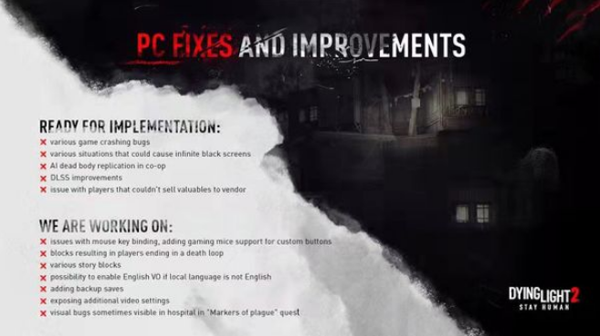 自2月4日正式发售以来,由Techland开发的开放世界丧尸类游戏《消逝的光芒2》获得了玩家的一直好评。不过,关于游戏发售初期所产生的各种BUG也让玩家们头疼不已。针对这种情况,官方已于今日(2月8日)紧急发布了1.04更新补丁说明。本轮更新适用于Steam和Epic平台。本轮更新除了修复一些常见的游戏BUG之外,还修改了DLSS适配,鼠标按键重新绑定,AMD显卡性能冲突的问题。![]()