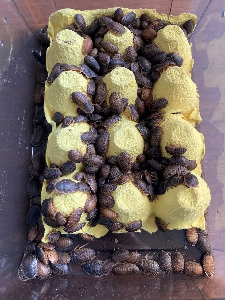 很快,我家就出现了一批鬃狮蜥专用的凝胶饲料和一大盒蟑螂。凝胶是一种墨绿色的胶状物,据说蜥蜴类宠物很爱吃这种人工调配的营养饲料,而蟑螂则是大部分爬行动物的标准食物。在好不容易心理上克服对蟑螂的反感后,我还得每天都耐心地给蟑螂准备胡萝卜和生菜,确保它们有足够的营养,长期存活。和之前以为的几张生菜叶子就能打发比起来,这样的精力成本让我每天的生活都格外充实,这还没算上3天就要给蟑螂们清理一次粪便了。