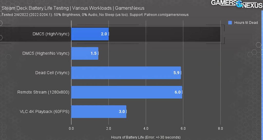 这两天,V社掌机Steam Deck的媒体评测视频,已经在陆续放出了。游戏表现、机器续航、读取速度、手感体验,各项内容都很全面。不过从续航来看,Steam Deck在运行一些高画面表现的游戏时,很难达到官方所宣传的2~8小时游玩时间,但是只要你会调,比如限制帧率、关闭垂直同步等等方式,游玩时间还是有明显提升的…玩游戏不要学技术的嘛!算了,我还是备充电宝吧。