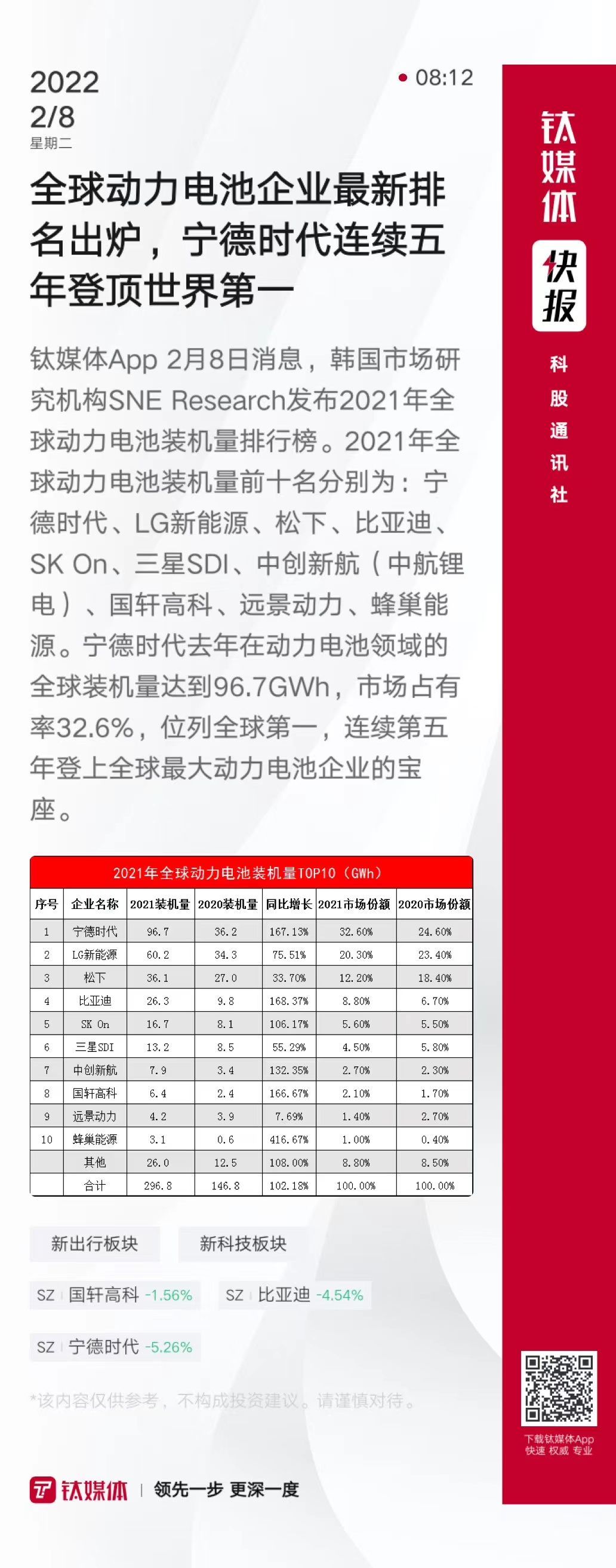 全球动力电池企业最新排名出炉,宁德时代连续五年登顶世界第一