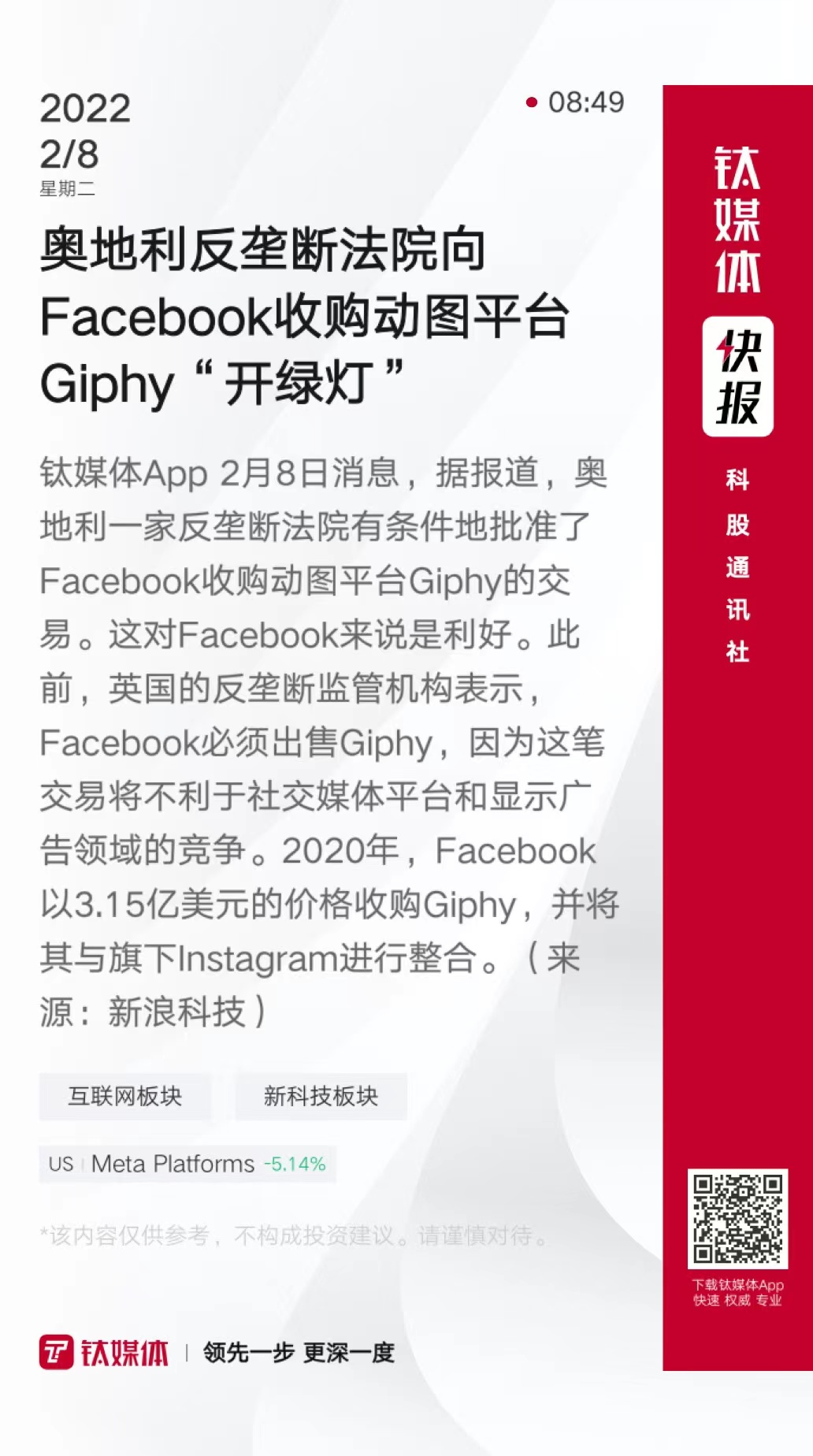 奥地利反垄断法院向Facebook收购动图平台Giphy“开绿灯”