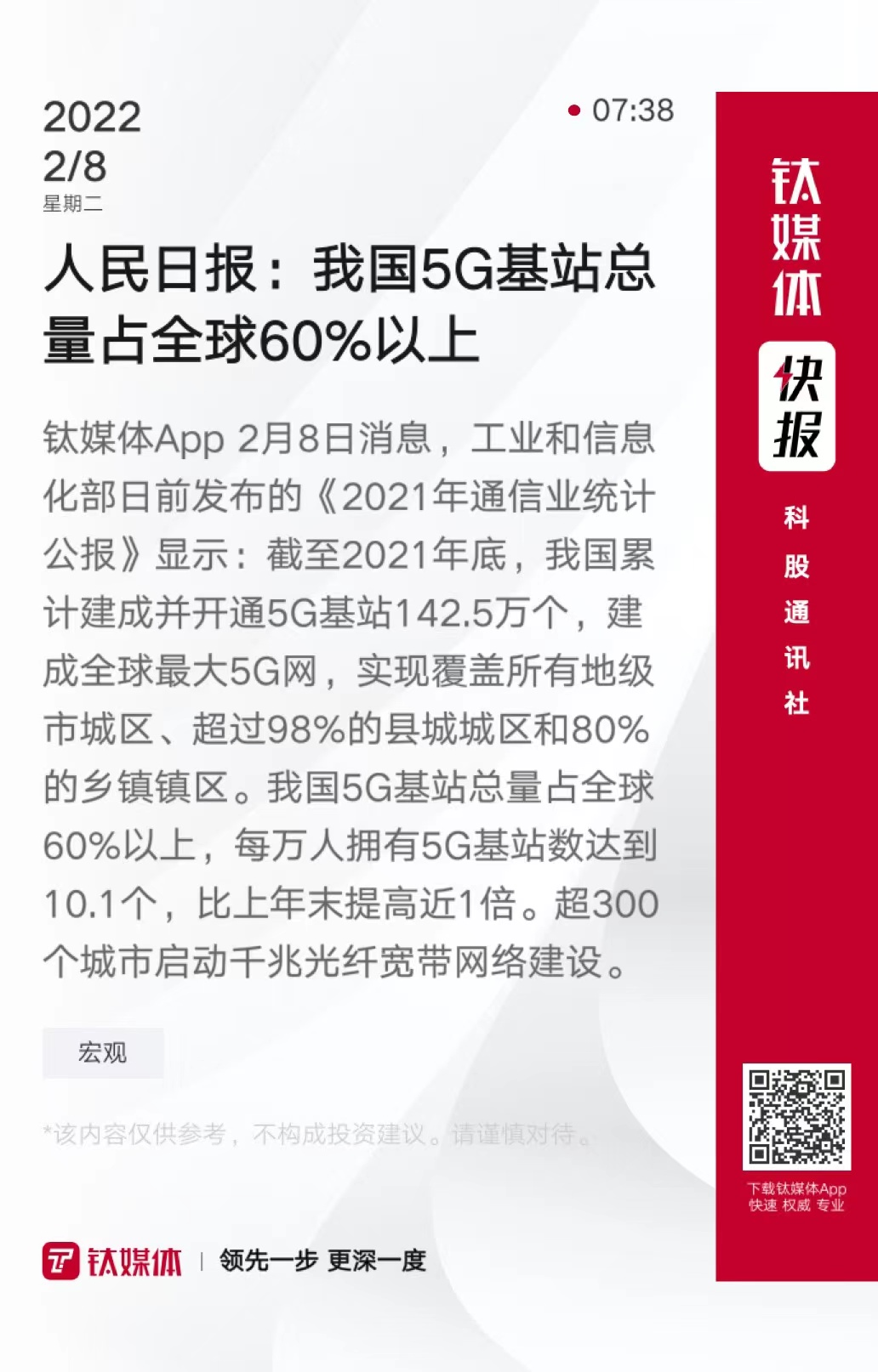 人民日报:我国5G基站总量占全球60%以上