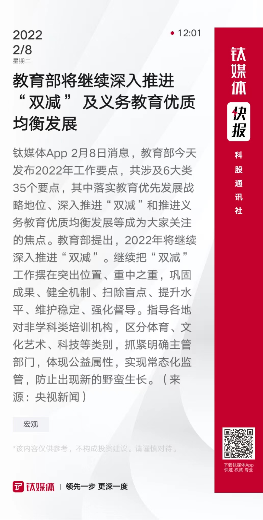 教育部将继续深入推进“双减” 及义务教育优质均衡发展