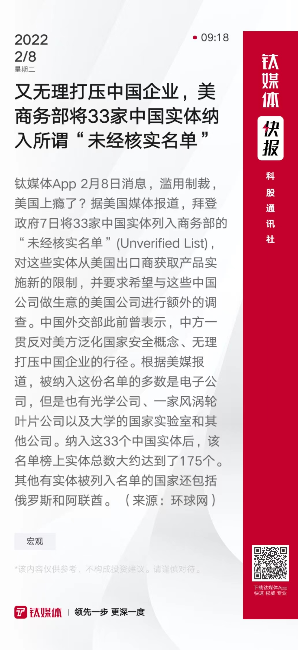又无理打压中国企业,美商务部将33家中国实体纳入所谓“未经核实名单”
