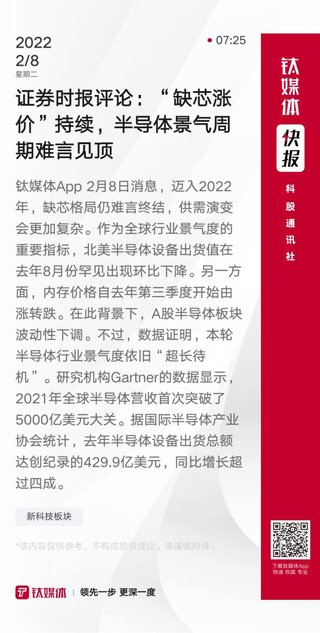 证券时报评论:“缺芯涨价”持续,半导体景气周期难言见顶