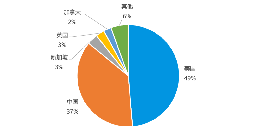图表3:2022 年 AI 2000 华人学者国家分布比例