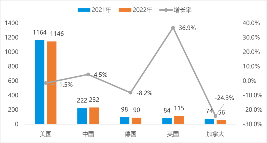 图表2:全球主要国家 AI 2000 入选学者数量同比增长情况