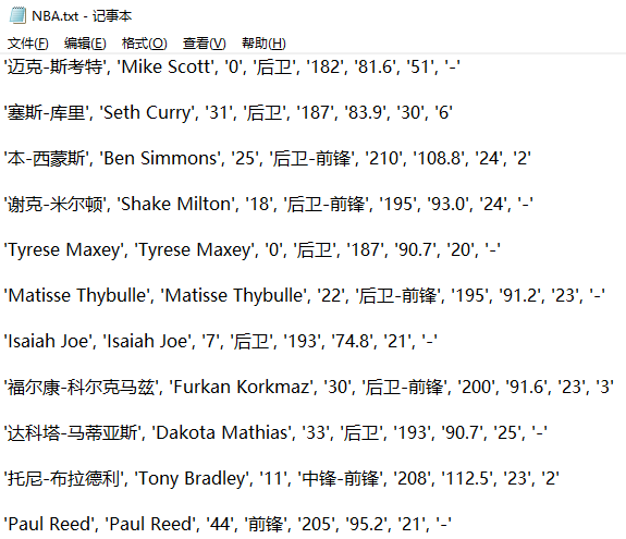 withopen("NBA.txt","a+",encoding="utf-8")asf:
