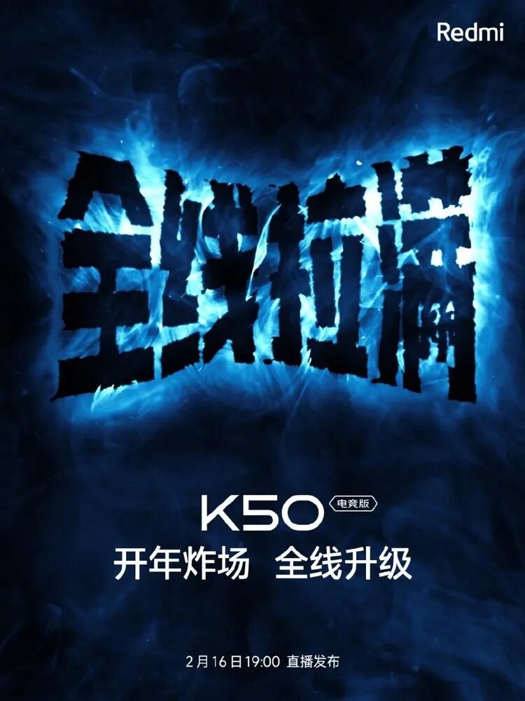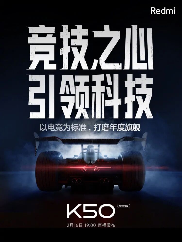今天,曝光已久的Redmi K50系列新机正式确认了发布日期。按照Redmi红米手机官方公布的信息,开年大作K50电竞版将于2月16日正式对外发布。