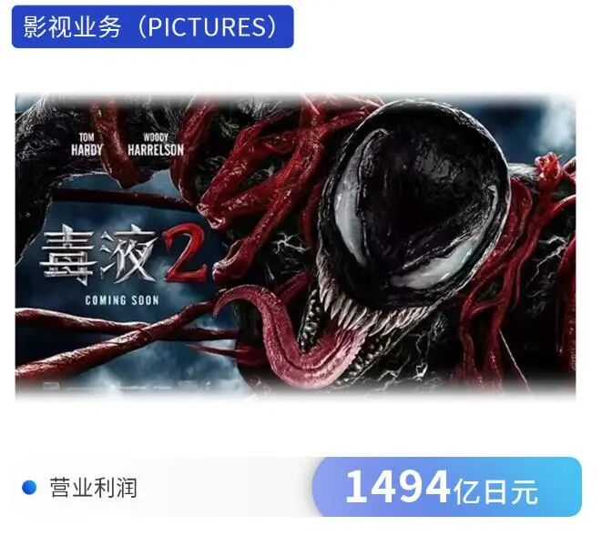 其中,除游戏业务贡献了929亿日元的营业利润外,索尼影视业务也出现了收入大涨,主要得益于《蜘蛛侠》和《毒液》两大系列新片的票房大热,利润高达1494亿。除此之外,音乐业务营业利润为551亿日元;电子产品及解决方案业务则是800亿日元,影像及传感解决方案业务647亿日元;金融服务业务为352亿日元。