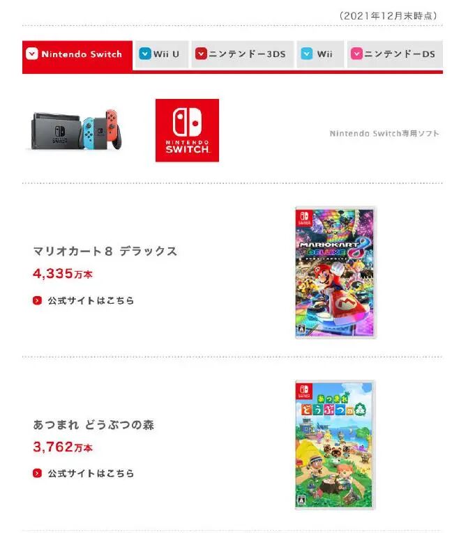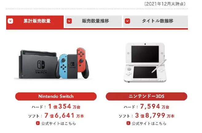 值得一提的是,财报指出,截至2021年12月31日,任天堂NS全球销量突破1.0354亿台,游戏销量7.6641亿份。从数量上看,其超越了1.0163亿的Wii与1.02亿的PS1,成为任天堂销量最高的家用机。