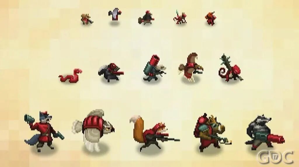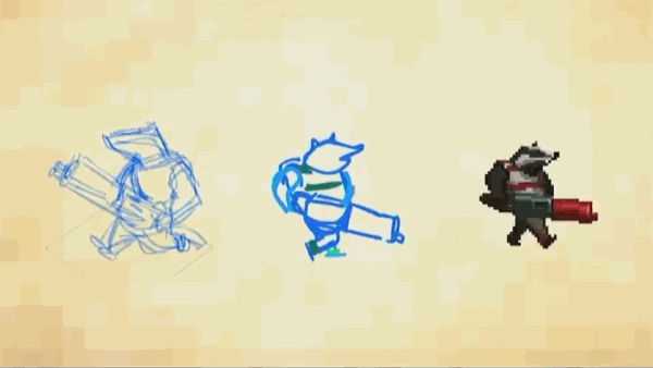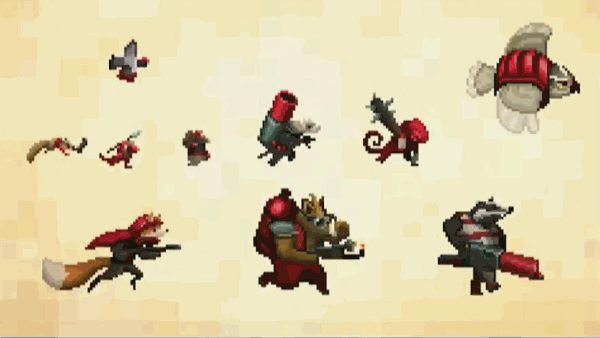 像素风还让动画制作更加简单,实际上,如何处理大量的角色动画一直是我们面临的难题,使用新技术将会非常昂贵,我们使用了老式的手绘sprites,聚焦于比较经典的动作而不是实现大量的细节。与其他的选项比起来,这样的设计相对简单。