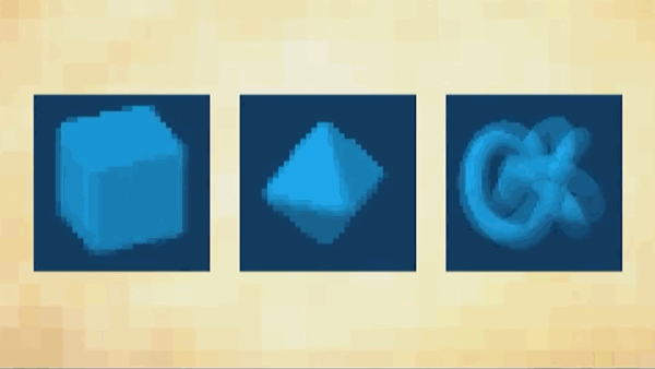 多年之前,我做了这些3D形状,并且以很低的分辨率进行了渲染,虽然看起来像是3D像素艺术,但实际上并没有用到过。所以,我想到这个方法的时候,感觉只会浪费时间。我需要找到更好的方法做旋转动画,而且需要很快完成,因此当时用了一个小时的时间,如果没有做到,就放弃这个想法。