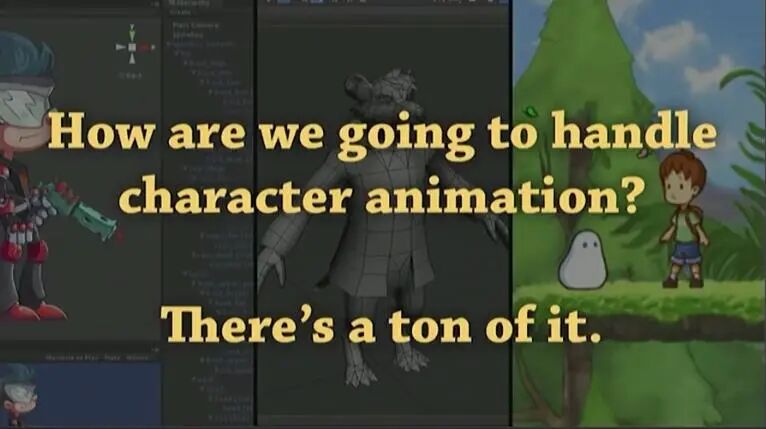 这是我手绘做的版本,当时的问题是我们该如何完成这些动画,甚至有可能不得不招聘一个专门的动画师去做这部分工作,因为我不能把4周的时间都用在手绘这些角色动画上。但我们也对这种方式感到担心,一旦动画需要进行核心调整,那就会耗费大量的时间去修改,而留给我们的时间却不够。