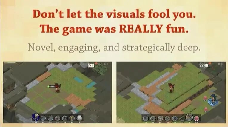 只不过,这是游戏研发了18个月的状态,他们本打算用这个作为发布版本,所以画风看起来很粗糙,但关键在于游戏玩法非常有趣,它真正实现了低门槛策略设计,但这个简陋的画风成为了游戏被更多人发现的障碍。