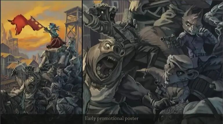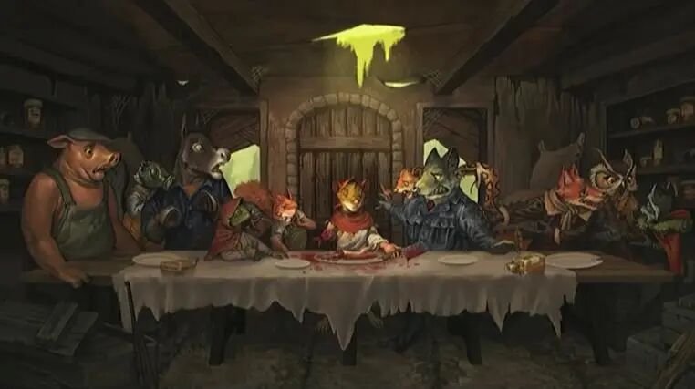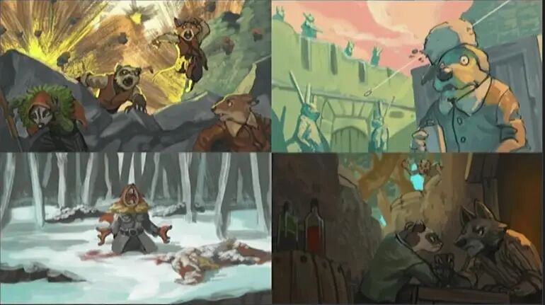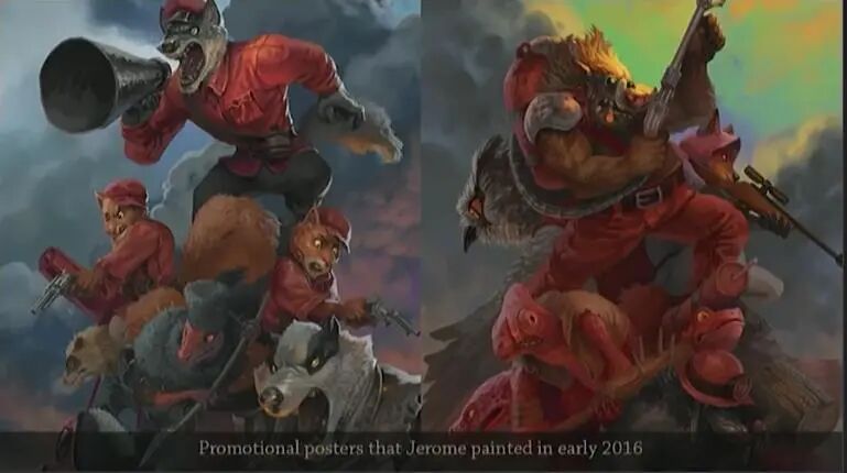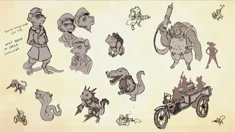 游戏的背景是各种动物卷入了一场决定谁为刀俎谁为鱼肉的战争,有点像是第一次世界大战,但更像是俄国革命,所以并不是一个欢乐的地方,而最初的游戏环境却影响了这个主题的表达。