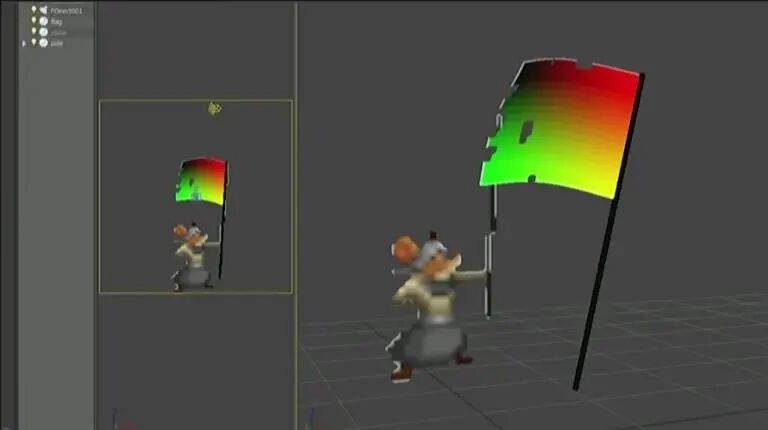 两个小时之后,我发现,尽管方法稍微复杂,但我们实际上可以用3D旗帜来追踪2D旗帜,这个阶段的指挥官挥舞旗帜的动画已经比较自然,从这张图来看非常简单。