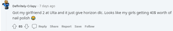 “给女朋友买了两瓶,只得到了地平线DLC”
