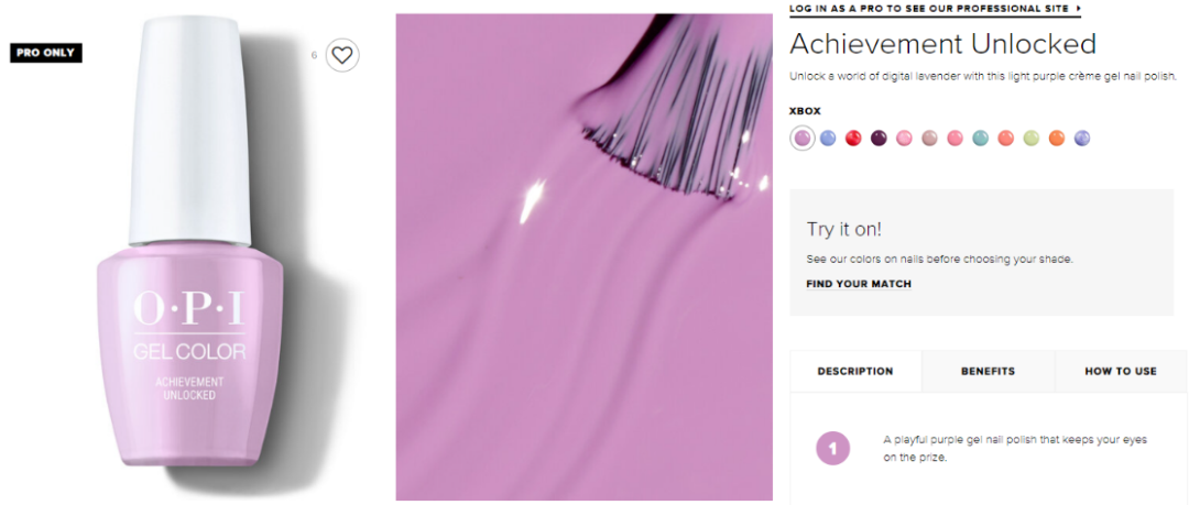 例如 “Achievement Unlocked”,翻译为“成就已解锁”,对应一款与薰衣草颜色相近的淡紫色指甲油。而像浆果一样具有深紫色的指甲油“N00Berry”,采用了多人对战游戏中的玩家黑话“noob”,翻译过来便是“菜鸟”。