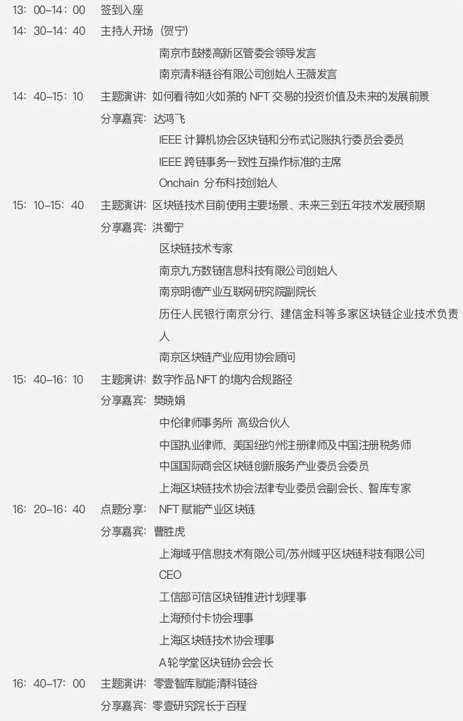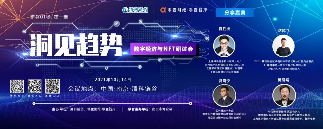 NFT技术在数字版权保护领域发展的如火如荼,国家也就知识产权规范方面提出新的要求,以推动中国知识产权事业高质量发展。这背后,都难以绕开区块链技术。区块链技术防篡改、不可逆、公开透明等优点,使之在专利保护上大放异彩,而NFT也是基于区块链技术,这一切让大家看到区块链技术在更多行业应用的潜能。借此机会,南京清科链谷有限公司联合零壹财经·零壹智库联合举办本场活动,致力于从区块链在NFT上的应用和NFT的实例分析入手,对区块链技术未来做进一步展望。■ 会议规模:30-50人(邀请方向:区块链技术企业、区块链上下游企业、艺术品企业的负责人,其他对区块链有兴趣的企业家)链谷01场是清科链谷与零壹财经合作共建的区块链交流平台,旨在南京以金融和科技行业知识分享、研究讨论等为主题,通过读书会、研讨会、行业联谊等形式,将行业内的专业人士、相关企业、技术人员等聚集起来,一起进行思想的碰撞。南京清科链谷是一家区块链综合解决方案提供商和资源支持机构,为区块链企业提供全生命周期服务。本着“共识、共享、共生”的实践精神,结合清科链谷的产业园和技术服务利基优势,为区块链及上下游企业提供载体、资本、社区等8项服务,与合作伙伴共享数字经济的时代红利。零壹财经·零壹智库2013年成立于北京,是领先的金融与科技知识服务平台,国家高新技术企业,建立了传播+研究+数据+咨询+培训等服务体系,覆盖金融与科技生态的主要领域,已服务近400家机构。![]()